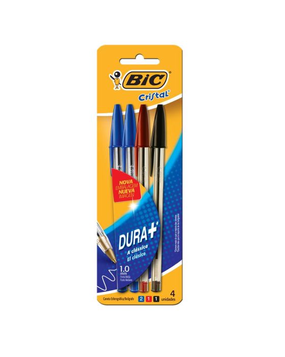 Caneta Esferografica Cristal 1.0mm Bls C/4 2 Azul-1 Preta-1 Vermelha Bic