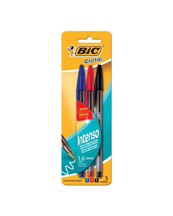 Caneta Esferografica Cristal Intenso 1.6mm Bls C/3 Azul- Preta-vermelha Bic