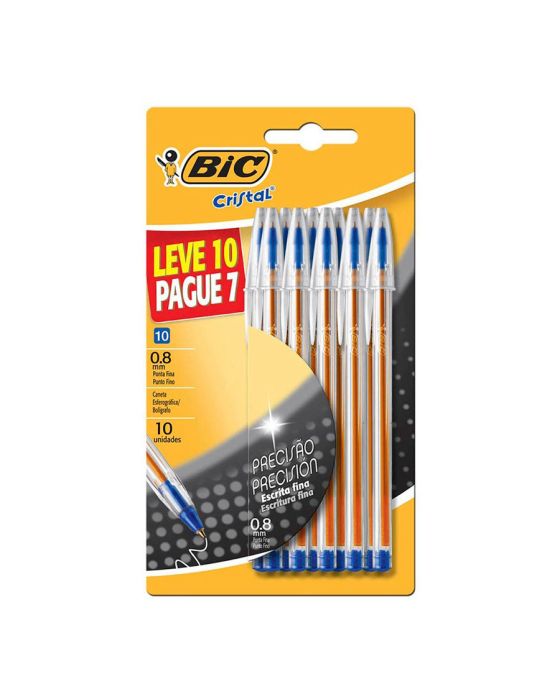 Caneta Esferografica Cristal Leve 10 Pague 7 0.7mm Azul Bls C/10 Bic Ww