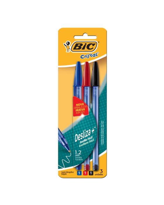 Caneta Esferografica Cristal Soft 1.2mm Bls C/3 Azul-preta-vermelha Bic