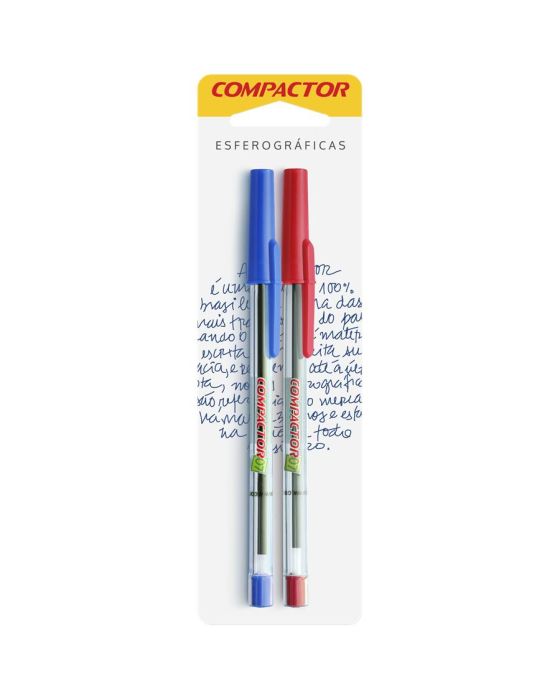 Caneta Esferografica Fina 0.7mm Bls C/2 Azul E Vermelha Compactor