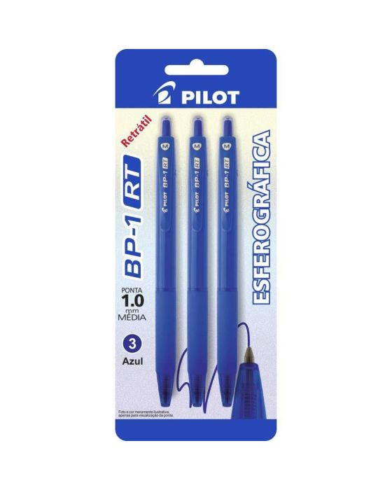 Caneta Esferografica Retratil Bp-1 Rt 1.0mm Bls C/3 Azul Pilot