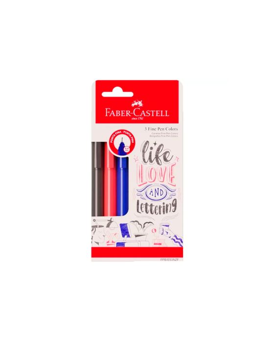 Caneta Hidrografica Fine Pen Colors Az/pt/vm 0.4mm Fpb/es3nzf Bls C/3 Faber-castell