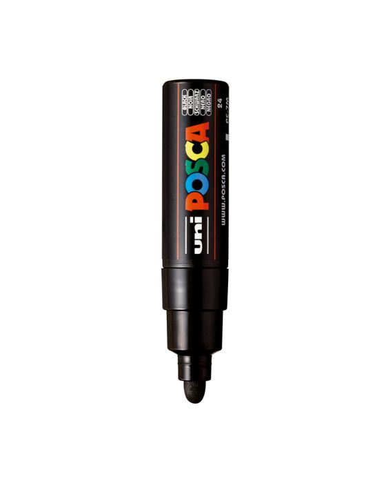 Caracteristicas:Posca facilita seu trabalho, pois é multiuso e serve para todo tipo de superfície tais como: tecido, madeira, vidro, plástico, papel, cerâmica, porcelana, metais, etc.Ganhe tempo, economize e otimize seus trabalhos!- Traço: 4.5mm a 5.5mm- Ponta: redonda grossa- Carga: 200m- Tinta: base d’água, atóxico e sem solventes- Secagem de 1 a 2 minutos- Feito para preenchimentos e grandes traços, esta é a que tem a ponta redonda mais grossa das POSCASComo utilizar:- Mantenha o marcador com a tampa fechada e agite o produto por alguns segundos para que a tinta fique homogênea.- Pressione a ponta sobre uma superfície lisa até a tinta preencher a ponta do marcador.- Aplique o marcador sobre a superfície desejada, e para manter o fluxo contínuo, basta bombear a ponta do marcador em uma superfície lisa. - Volte a aplica-lo em sua peça.Após a aplicação, a secagem é ultra-rápida. Você só precisa de 1 a 2 minutos para ter a peça trabalhada com um acabamento perfeito sem falhas.Tecnologia esfera: Os componentesdas tintas dos marcadores Posca são misturados através de uma esfera interna, que proporciona à tinta uma textura homogênea e garante um acabamento de qualidade para sua atividade.100% Cobertura: Mais uma vantagem para você! Após aplicar a primeira cor, espere secar durante 1 minuto, e já pode passar a segunda por cima, sem manchar a que está embaixo, e com uma excelente cobertura sem falhas. Faça quantas camadas quiser.* As especificações podem ser alteradas sem aviso prévio ** Imagem meramente ilustrativa.