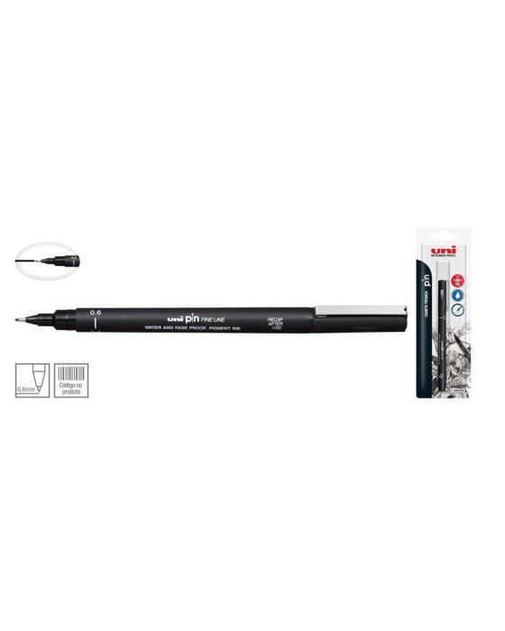 Caneta Tecnica Uni Pin Preta 0.6 Bls C/1 Tipo Nankin