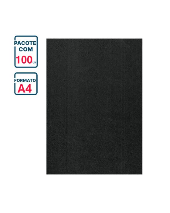 Características:A Capa Encadernacao A4 Preta Plaspiral é ideal para a encadernação de livros, cadernos e apostilas, deixando mais resistentes!Detalhes:- Marca: Plaspiral;- Linha: Capa para encadernação;- Cor: Preto;- Textura: Fosco;- Quantidade de folhas: 100 folhas;- Formato: A4;- Medidas: 210 x 297mm (21 x 29,7cm);- Contém: 1 embalagem com 100 unidades do produto;- Ideal para cadernos, apostilas e lista de preços.* As especificações podem ser alteradas sem aviso prévio ** Imagem meramente ilustrativa.
