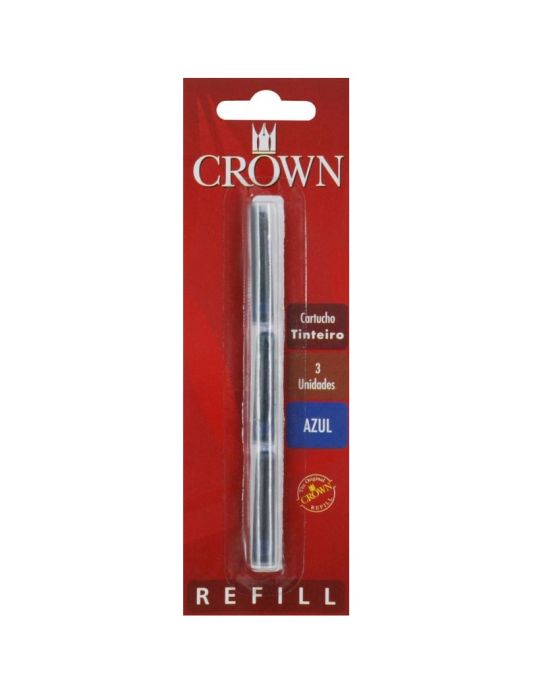 Carga Caneta Tinteiro Azul C/3 Un Ca32005a Crown