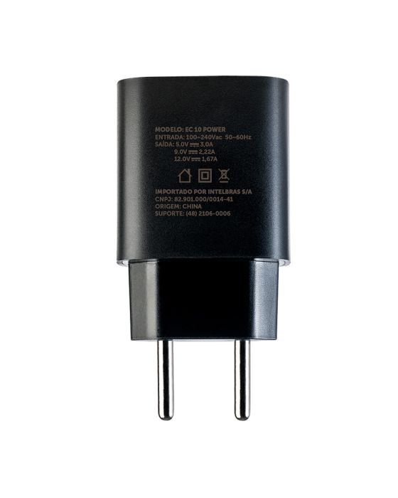 Características:O EC 10 Power 20W é um carregador USB-C rápido e versátil, com 1 saída no formato USB-C. Oferecendo flexibilidade para atender os novos smartphones que são comercializados sem fonte carregadora junto ao celular. Com saída USB-C Power Delivery (USB-C PD) com potência máxima de 20W, ele carrega seu aparelho até três vezes mais rápido que um carregador convencional.Detalhes:- Marca: Intelbras;- Modelo: EC 10 Power Ultrarápido;- Linha: Carregadores de parede;- Tipo: de Parede;- Voltagem: Bivolt;- Potência: 20W;- Cor: Preto;- Saída: USB-C;- Contém: 1 unidade do produto;- Carregador universal;- Carregamento até 3 vezes mais rápido;- Não vicia a bateria do dispositivo;- Proteção contra surtos de tensão e sobrecarga;- Material Anti-chamas.Fabricado na China. | Validade: Indeterminada.Diferenciais:- Carregamento até 3x mais rápido: O carregador EC 1O Power carrega seus aparelhos com segurança e velocidade até 3 vezes mais rápida que um carregador convencional.- Bivolt automático: Carregue seus dispositivos em qualquer lugar sem riscos de queimar o aparelho.- Conexão protegida: O carregador EC 10 Power é homologado pela Anatel e tem proteção contra curto-circuito e sobrecarga. Além disso, é feito em plástico antichamas, garantindo mais segurança e proteção para seus dispositivos.- Ideal para diversos dispositivos: O carregador EC 10 Power garante velocidade na recarga, proteção para o dispositivo e é compatível com os novos modelos de smartphones, com entrada USB-C para USB-C e USB-C para lightining.Onde usar:- Pode ser usado em residências, apartamentos, empresas e escritórios.Compatibilidade:- Compatível com qualquer dispositivo com conexão USB.Energia:- Entrada: 100 ~ 240Vca 50/60Hz 0,6 A máximo (bivolt automático);- Saída: USB Type-C: Power Delivery 5 V ? 3,0 A, 9 V ? 2,22 A, 12 V ? 1,67 A (máximo);- Corrente máxima: 3,0 A;- Consumo em Stand By: 0.1 W.Composição;- Fabricado em Plástico, Metal e Componentes eletrônicos.Medidas:- Dimensões do produto: 8 x 2,88 x 4,1cm (CxLxA);- Dimensões da embalagem: 11,5 x 6 x 3,2cm (CxLxA);- Peso: 74g.Conteúdo da embalagem: 1 Carregador USB preto.Garantia do fornecedor: 1 ano contra defeitos de fabricação.* As especificações podem ser alteradas sem aviso prévio ** Imagem meramente ilustrativa.