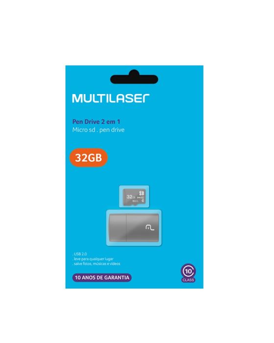 Caracteristicas:Ideal para gravação de vídeos em FULL HD- Capacidade: 32GB- Classe 10- Compatibilidade: USB 2.0 e Micro USB- Taxa de transferência leitor USB: Até 480 Mb/s- Taxa de transmissão de dados Cartão: 10MB/s, gravação até 30MB/s leitura- Dimensões Leitor de cartão : 47 x 20 x 11mm- Dimensões cartão Micro USB: 15,0 x 11,0 x 1,0mm- Peso total: 3g- Garantia: 10 Anos contra defeitos de fabricação- Conteúdo da embalagem: 1 Cartão de memória Micro SD e 1 adaptador de cartãoObs: Função Pen drive utilizando o cartão Micro SD no adaptador USB 2.0* As especificações podem ser alteradas sem aviso prévio ** Imagem meramente ilustrativa
