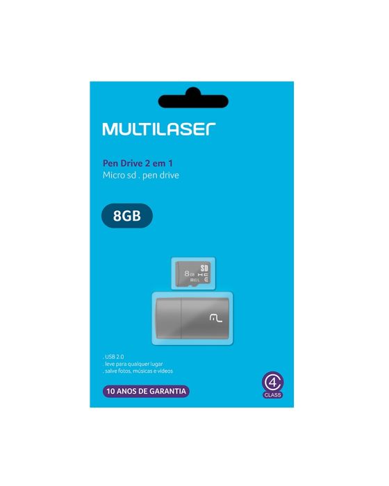 Cartao De Memoria 8gb + Leitor Usb 2 Em 1 Mc161 Classe 4 Multi Ww