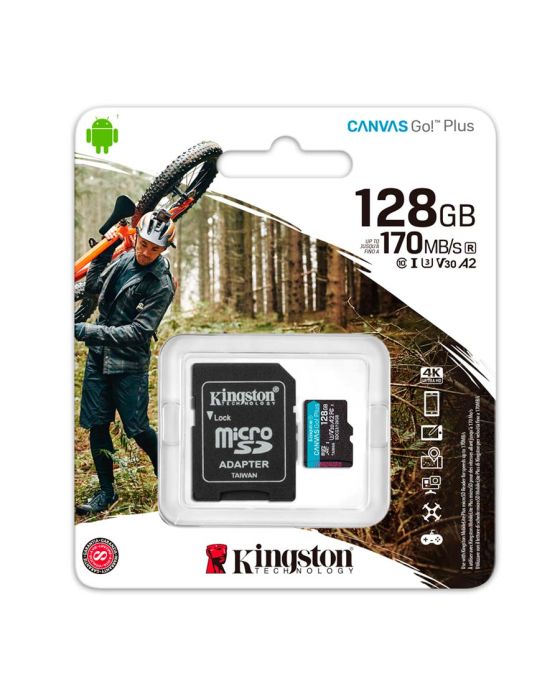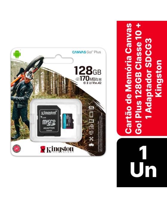 Cartao De Memoria Canvas Go Plus 128gb Classe 10 + 1 Adaptador Sdcg3 Kingston