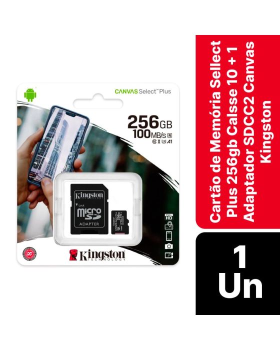 Cartao De Memoria Canvas Select Plus 256gb Classe 10 + 1 Adaptador Sdcs2 Kingston