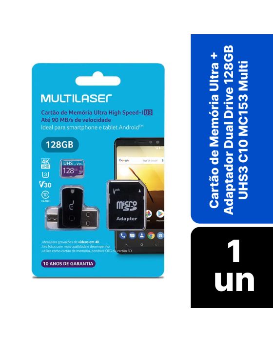 Cartao De Memoria Ultra + Adaptador Dual Drive 128gb Uhs3 C10 Mc153 Multi