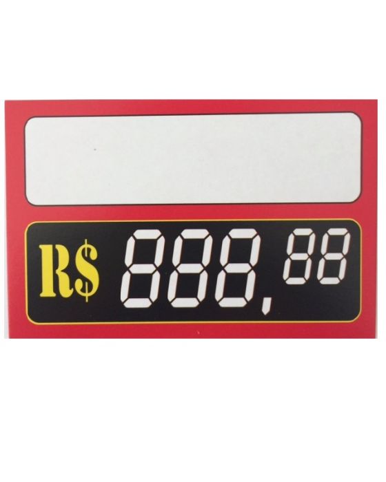 Caracteristicas:- Chame a atenção para o seu produto!!- Papel duplex 250 g/m2- Formato: 8,5 x 4,0cm- Caixa de preço formato digital de 5 dítigos para pintar- Cor predominante: branca com bordas em vermelho* As especificações podem ser alteradas sem aviso prévio ** Imagem meramente ilustrativa