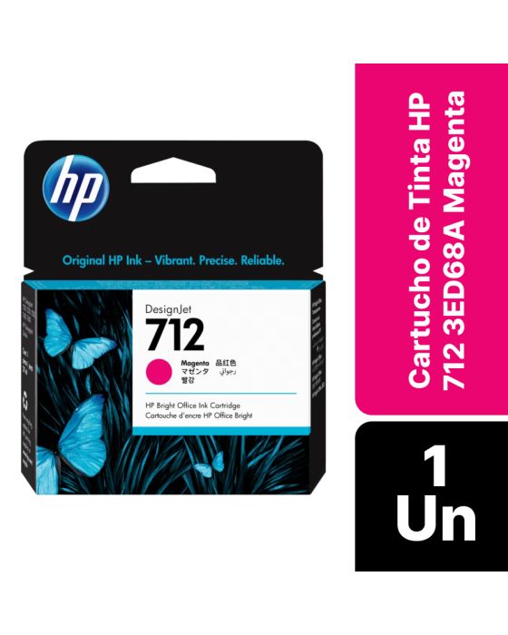 Características:Imprima imagens e fotos com cores nítidas e intensas. As tintas HP originais oferecem uma resistência extraordinária à descoloração e confiabilidade e desempenho superiores.A qualidade da HP que você conhece e confia agora mais acessível do que nunca. Imprima documentos e fotos resistentes à água e manchas e economize em impressão freqüente com os cartuchos originais HP XL.Detalhes:- Marca: HP;- Modelo: 712;- Referência: 3ED68A;- Linha: Cartuchos;- Cor: Magenta;- Volume cartucho: 29ml;- Contém: 1 unidade do produto;- Tecnologia de impressão: Jato de Tinta;- Produto Original.Fabricado na Malásia.Impressoras Compátiveis:- Modelos Impressora HP DesignJet T210, Impressora HP DesignJet T230, Impressora HP DesignJet T250, Impressora HP DesignJet T630, Impressora HP DesignJet T650.Medidas:- Dimensões embalagem: 11,1 x 2,5 x 12,4cm (CxLxA).Descarte de Cartuchos e Toners:- Você pode fazer o descarte com ajuda do ReCiclo, um projeto da Contabilista através da Contabilista Responsável, basta enviar os seus resíduos para a nossa Central de Distribuição*, se você é de Curitiba ou de Joinville, pode ir até uma de nossas lojas ou preencher o formulário disponível no site para solicitar retirada de materiais.Acesse o Link para verificar as marcas que reciclamos e nossos endereços: https://www.contabilistaresponsavel.com.br/reciclo.* Enviar conteúdo aos cuidados do Setor de Reciclagem.** Atenção: Cartuchos e Toners compatíveis não entram no descarte do ReCiclo, apenas suprimentos originais de nossos parceiros (confira a lista no link acima).Conteúdo da embalagem: 1 Cartucho de Tinta.* As especificações podem ser alteradas sem aviso prévio ** Imagem meramente ilustrativa.