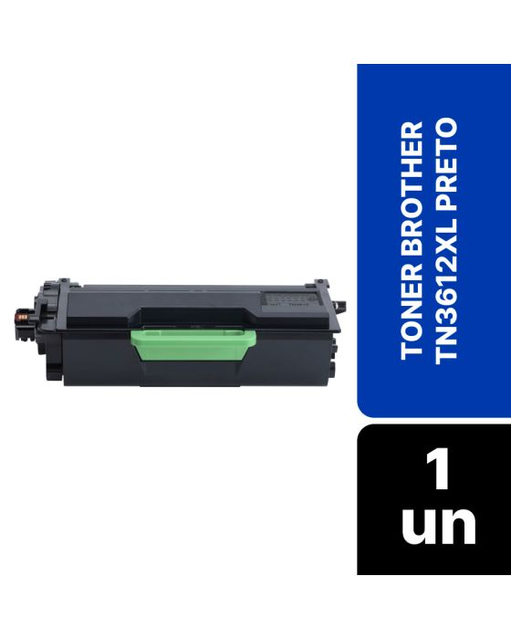 Características:Os cartuchos Brother oferecem o melhor em qualidade para suas impressões, o Toner TN3612XL possui máximo rendimento de 25.000 páginas para que não precise se preocupar com a troca do toner e imprimir todos os seus documentos do dia a dia. Com balanceamento ideal para proporcionar regularidade no seu fluxo e na distribuição da tinta pelo papel.Detalhes:- Marca: Brother;- Modelo: TN3612XL;- Linhas: Toners; - Cor: Preto;- Contém: 1 unidade do produto;- Tecnologia de impressão: Laser;- Rendimento por página: Aproximadamente 25.000 páginas;- Cartucho de toner de máximo rendimento;- Impressões de alta definição;- Produto Original.Impressoras Compátiveis:- Modelos Laser HLL5212DN, Laser HLL5212DW, Laser HLL6412DW, Laser DCPL5512DN, Laser DCPL5662DN, Laser MFCL5912DW e Laser MFCL6912DW.Medidas:- Dimensões embalagem: 36,1 x 15,3 x 24,7cm (CxLxA).Descarte de Cartuchos e Toners:- Você pode fazer o descarte com ajuda do ReCiclo, um projeto da Contabilista através da Contabilista Responsável, basta enviar os seus resíduos para a nossa Central de Distribuição*, se você é de Curitiba ou de Joinville, pode ir até uma de nossas lojas ou preencher o formulário disponível no site para solicitar retirada de materiais.Acesse o Link para verificar as marcas que reciclamos e nossos endereços: https://www.contabilistaresponsavel.com.br/reciclo.* Enviar conteúdo aos cuidados do Setor de Reciclagem.** Atenção: Cartuchos e Toners compatíveis não entram no descarte do ReCiclo, apenas suprimentos originais de nossos parceiros (confira a lista no link acima).*** Caso a Contabilista receba cartuchos e toners de outras marcas, não poderemos nos responsabilizar pela reciclagem e devolveremos ao remetente.Conteúdo da embalagem: 1 Cartucho de toner e 1 Guia de reciclagem.* As especificações podem ser alteradas sem aviso prévio ** Imagem meramente ilustrativa.