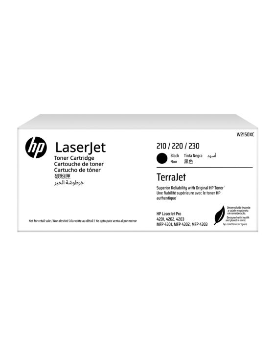 Características:Com o Toner HP W2150XC Preto, você pode imprimir documentos profissionais, relatórios, apresentações e muito mais com facilidade, garantindo resultados incríveis na hora de fazer a sua impressão!Este Toner uma escolha econômica, pois possui um rendimento aproximado de 7.500 páginas considerando 5% de cobertura no papel A4, garantindo que você possa imprimir um grande volume de documentos sem se preocupar em substituir o toner com frequência.Detalhes:- Marca: HP;- Modelo: W2150XC;- Linha: Toners;- Cor: Preto;- Contém: 1 unidade do produto;- Tecnologia de impressão: Laser;- Rendimento por página: Aproximadamente 7.500 páginas;- Impressões de alta definição;- Produto Original.Impressoras Compátiveis:- Modelos HP LaserJet Pro 4201, 4202, 4203, MFP 4301, MFP 4302, MFP 4303.Medidas:- Dimensões embalagem: 36 x 9,2 x 12,3 (CxLxA).Descarte de Cartuchos e Toners:- Você pode fazer o descarte com ajuda do ReCiclo, um projeto da Contabilista através da Contabilista Responsável, basta enviar os seus resíduos para a nossa Central de Distribuição*, se você é de Curitiba ou de Joinville, pode ir até uma de nossas lojas ou preencher o formulário disponível no site para solicitar retirada de materiais.Acesse o Link para verificar as marcas que reciclamos e nossos endereços: https://www.contabilistaresponsavel.com.br/reciclo.* Enviar conteúdo aos cuidados do Setor de Reciclagem.** Atenção: Cartuchos e Toners compatíveis não entram no descarte do ReCiclo, apenas suprimentos originais de nossos parceiros (confira a lista no link acima).Conteúdo da embalagem: 1 Cartucho de toner e 1 Guia de reciclagem.* As especificações podem ser alteradas sem aviso prévio ** Imagem meramente ilustrativa.