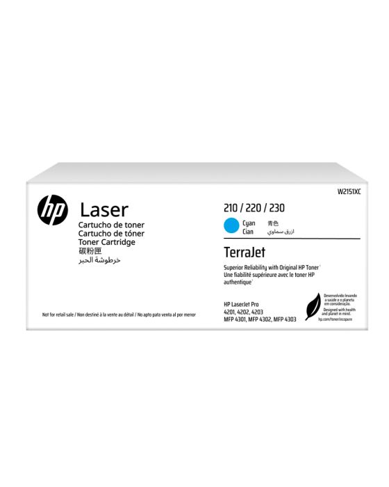 Características:Com o Toner HP W2151XC Ciano, você pode imprimir documentos profissionais, relatórios, apresentações e muito mais com facilidade, garantindo resultados incríveis na hora de fazer a sua impressão!Este Toner uma escolha econômica, pois possui um rendimento aproximado de 5.500 páginas considerando 5% de cobertura no papel A4, garantindo que você possa imprimir um grande volume de documentos sem se preocupar em substituir o toner com frequência.Detalhes:- Marca: HP;- Modelo: W2151XC;- Linha: Toners;- Cor: Ciano;- Contém: 1 unidade do produto;- Tecnologia de impressão: Laser;- Rendimento por página: Aproximadamente 5.500 páginas;- Impressões de alta definição;- Produto Original.Impressoras Compátiveis:- Modelos HP LaserJet Pro 4201, 4202, 4203, MFP 4301, MFP 4302, MFP 4303.Medidas:- Dimensões embalagem: 36 x 9,2 x 12,3 (CxLxA).Descarte de Cartuchos e Toners:- Você pode fazer o descarte com ajuda do ReCiclo, um projeto da Contabilista através da Contabilista Responsável, basta enviar os seus resíduos para a nossa Central de Distribuição*, se você é de Curitiba ou de Joinville, pode ir até uma de nossas lojas ou preencher o formulário disponível no site para solicitar retirada de materiais.Acesse o Link para verificar as marcas que reciclamos e nossos endereços: https://www.contabilistaresponsavel.com.br/reciclo.* Enviar conteúdo aos cuidados do Setor de Reciclagem.** Atenção: Cartuchos e Toners compatíveis não entram no descarte do ReCiclo, apenas suprimentos originais de nossos parceiros (confira a lista no link acima).Conteúdo da embalagem: 1 Cartucho de toner e 1 Guia de reciclagem.* As especificações podem ser alteradas sem aviso prévio ** Imagem meramente ilustrativa.