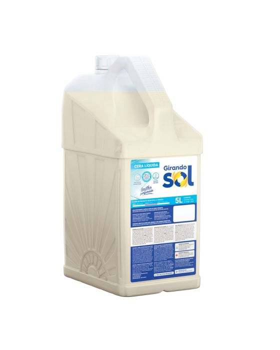 Características:Todo mundo gosta da sensação ver o piso brilhando. Sabe por quê? Porque a beleza também traz conforto e felicidade.A Cera Líquida Girando Sol Incolor é ideal para madeira e pisos frios. Além de dar o brilho na medida certa, ela reaviva as cores e protege contra riscos.Detalhes:- Marca: Girando Sol.- Modelo:- Linha: Cera Líquida.- Cor: Incolor.- Volume: 5 litros.- Contém: 1 embalagem do produto com 5 litros.- Proteção e durabilidade.- Diluível em água.- Conserva pisos vitrificados com verniz, poliuretano e similares.Onde usar: - Ideal para madeira e pisos frios, como: cerâmica, lajotas, linóleo, paviflex, vulcapiso, ladrilhos, pastilhas, borracha, granito, mármore, pedra ardósia ou qualquer outro piso impermeável.Modo de usar: - Uso Puro : Lave o piso com uma mistura de água com um limpador amoniacal ou detergente. Sobre o piso limpo e seco, aplique uniformemente a Cera Líquida GIRANDO SOL com um pano e deixe secar. Se desejar um brilho mais intenso, lustre com enceradeira ou com uma flanela limpa.- Uso Diluído (Limpeza do piso ou assoalho): Dilua em um balde 2 colheres de sopa (30ml) de Cera Líquida GIRANDO SOL, para cada litro de água. Se desejar mais brilho, aumente a quantidade do produto. Molhe um pano limpo na solução, aplique sobre o piso e deixe secar. Composição Química:- Composição: Parafina, Cera de Carnaúba, Monoestearato de Sorbitano, Ácido Esteárico, Monoetanolamina, Monoestearato de Glicerina, Álcool Ceto Estearílico, Resina, Amoníaco, Preservante, Corante, Fragrância e Água.Precauções:- Lave a colher medida antes de reutilizá-la para outros fins.- Cuidado: irritante para os olhos e mucosas- Evitar contato prolongado com a pele, lavar as mãos após o uso- Manter fora do alcance de crianças e animais domésticos- Mantenha o produto em sua embalagem original- Em caso de contato com os olhos, lave-os com água- Se inalado em excesso, leve a pessoa a um local bem ventilado- Em caso de ingestão, não provoque vômito e consulte imediatamente o Centro de Intoxicações ou o seu médico, levando o rótulo do produto.* As especificações podem ser alteradas sem aviso prévio ** Imagem meramente ilustrativa