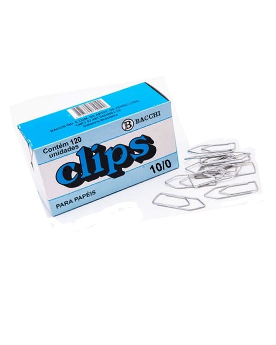 Característica:Clips 10/0 caixa com 120 unidadesTem por finalidade prender papéis, filmes, plásticos e outros. O uso é manual e a sua maior utilidade concentra-se nos trabalhos de escritório em geral. - Produzido em arame de aço. - Embalagem com 120 unidades - Marca: Bacchi - Cor: Galvanizado * Imagem meramente ilustrativa** Manter fora do alcance das crianças