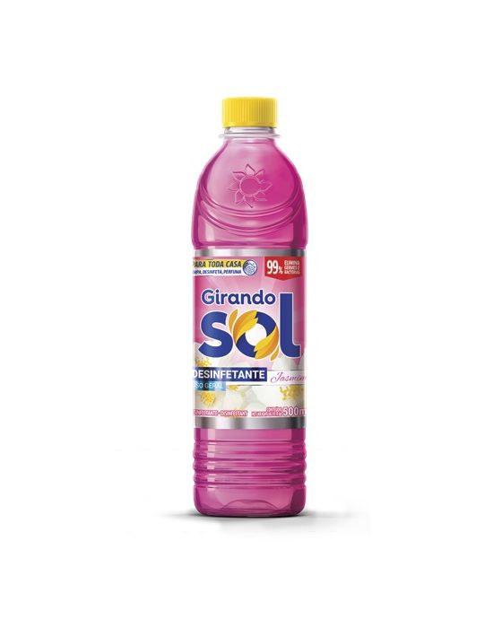 Características:Desinfetante Girando Sol- Desinfetante com ação bactericida- Ótimo para limpeza de azulejos, esmaltados, pisos e mármores.Modo de Usar: Puro = Como desinfetante e bactericida: vasos sanitários, ralos, latas de lixo, aplique diretamente nas bordas. Deixe agir por 10 minutos para obter ação eficiente.Diluído Na limpeza, aplicar em pisos, azulejos, esmaltados, banheiras e mármore. Use 2 tampas por litro de água.Cuidados - Manter fora do alcance de crianças e animais domésticos.- Mantenha o produto em sua embalagem original.- Não reutilize a embalagem vazia para outros fins.- Não utilizar em carpetes e tecidos.- Em caso de contato com os olhos, lave-os com água corrente em abundância, por pelo menos 15 minutos.- Em contato com a pele, lave as partes atingidas com água em abundância.- Em ambos os casos, se houver sinais de irritação, procure socorro médico, levando a embalagem ou o rótulo do produto.- Em caso de aspiração ou inalação excessiva, remova a pessoa para local arejado e se houver sinais de intoxicação, chame socorro médico.- Em caso de ingestão, não provoque vômito e consulte imediatamente o Centro de Intoxicações ou o seu médico, levando o rótulo do produto.* As especificações podem ser alteradas sem aviso prévio ** Imagem meramente ilustrativa