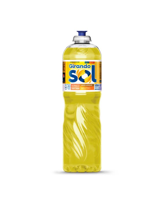 Caracteristicas:A família brasileira é assim: não gosta de deixar a louça para o dia seguinte e sente prazer em ver seus pratos e talheres limpos, prontos para ser usados novamente!O detergente Líquido Girando Sol 500ml é eficiente na remoção de gorduras e ainda proporciona economia graças a seu alto rendimento. Com tensoativos biodegradáveis, além de cuidar de sua louça, não agride o meio ambiente e, por ser dermatologicamente testado, também não agride sua pele.Detalhes:- Marca: Girando Sol.- Linha: Detergente.- Fragrância: Neutro.- Quantidade: 500ml.- Propriedade: Biodegradável.- Contém glicerina.- Testada dermatologicamente.- Desinfetante com ação bactericida.- Ótimo para limpeza de azulejos, esmaltados, pisos e mármores.Modo de Usar:- Puro: Como desinfetante e bactericida: vasos sanitários, ralos, latas de lixo, aplique diretamente nas bordas. Deixe agir por 10 minutos para obter ação eficiente.- Diluído: Na limpeza, aplicar em pisos, azulejos, esmaltados, banheiras e mármore. Use 2 tampas por litro de água.Cuidados:- Manter fora do alcance de crianças e animais domésticos.- Mantenha o produto em sua embalagem original.- Não reutilize a embalagem vazia para outros fins.- Não utilizar em carpetes e tecidos.- Em caso de contato com os olhos, lave-os com água corrente em abundância, por pelo menos 15 minutos.- Em contato com a pele, lave as partes atingidas com água em abundância.- Em ambos os casos, se houver sinais de irritação, procure socorro médico, levando a embalagem ou o rótulo do produto.- Em caso de aspiração ou inalação excessiva, remova a pessoa para local arejado e se houver sinais de intoxicação, chame socorro médico.- Em caso de ingestão, não provoque vômito e consulte imediatamente o Centro de Intoxicações ou o seu médico, levando o rótulo do produto.* As especificações podem ser alteradas sem aviso prévio ** Imagem meramente ilustrativa