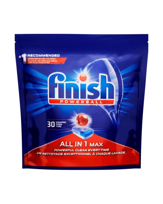 Características:Detergente lava-louças Finish Powerball All In One Max. Finish é o detergente em tablete para lava-louças que combina a limpeza poderosa com o brilho perfeitoDetalhes:- Marca Finish / Reckitt- Modelo: Finish Powerball Tablete- Quantidade or embalagem: 30 unidades- Peso: 489g (30 tabletes de 16,3g cada)- Tipo: Capsúla, tablete- Limpeza profunda - Ação desengordurante - Remoção de manchas e resíduos difíceis* café, chá, gema de ovo, leite queimado, cereal com leite e lasanha.- Com bicarbonato de sódio- Com agentes que ajudam a dar brilhoRecomendado para lava louças:- Samsung, LG, Brastemp, Consul e etc.* Finish é a marca Nº1 em recomendação pelos principais fabricantes de Máquinas de Lava Louça.Ingredientes:- Carbonato de sódio, percarbonato de sódio, tetra acetil etileno diamina, álcool etoxilado, álcool etoxilado propoxilado, sequestrantes, alcalinizantes, coadjuvantes, anti-espumante, enzimas, corantes e fragrância.Recomendações:- Manipule com as mãos secas somente! Não remova a película do tablete. - Este produto não protege contra danos mecânicos ou restaura itens já danificados. - Não coloque no cesto de talheres. - O reservatório deve estar seco. Coloque o tablete no reservatório de dosagem.A camada azul amolece os restos de comida já secos, facilitando a limpeza. A camada branca ajuda a eliminar resíduos de sujeira, inclusive manchas, para um resultado brilhante. E o exclusivo Powerball de ação efervescente libera bolhas que dispersam agentes de limpeza.* As especificações podem ser alteradas sem aviso prévio ** Imagem meramente ilustrativa.