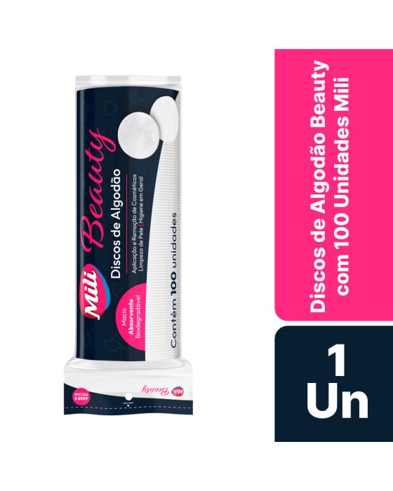 Características:Os Discos de Algodão Mili tem um foco na aplicação e remoção de cosméticos, limpeza de pele e higiene em geral, sendo um item indispensável para salões de beleza, clínicas de saúde e de estética!Detalhes: - Marca: Mili;- Modelo: Beauty;- Linha: Algodão; - Cor: Branco;- Tipo: Redondo;- Quantidade de discos: 100 unidades;- Contém: 1 embalagem com 100 unidades;- Embalagem abre e fecha;- Macio;- Biodegradável.Indústria Brasileira | Validade: 5 anos após a data de fabricação.Ideal para: Aplicação e remoção de cosméticos, Limpeza de Pele e Higiene em Geral, sendo um item perfeito para salões de beleza, clínicas de saúde e de estéticasComposição - Fabricado em 100% algodão.Cuidados:- Evite umidade, temperatura elevada e local empoeirado. Recomendações:- Produto estéril de uso único;- Descartar corretamente após o uso. Medidas:- Dimensões: 24,5 x 6 x 5,5cm (CxLxA)IMPORTANTE! MANTER FORA DO ALCANCE DAS CRIANÇAS E DOS ANIMAIS DOMÉSTCOS.* As especificações podem ser alteradas sem aviso prévio** Imagem meramente ilustrativa.