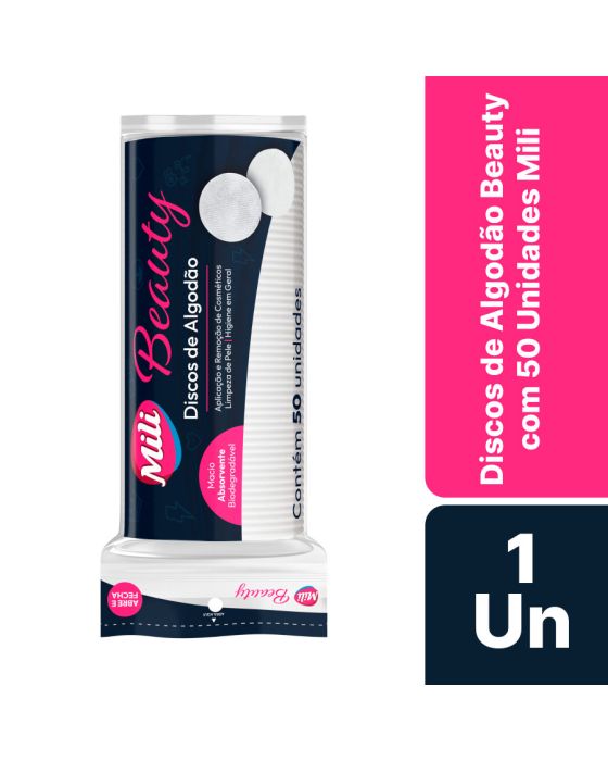 Características:Os Discos de Algodão Mili tem um foco na aplicação e remoção de cosméticos, limpeza de pele e higiene em geral, sendo um item indispensável para salões de beleza, clínicas de saúde e de estética!Detalhes: - Marca: Mili;- Modelo: Beauty;- Linha: Algodão; - Cor: Branco;- Tipo: Redondo;- Quantidade de discos: 50 unidades;- Contém: 1 embalagem com 50 unidades;- Embalagem abre e fecha;- Macio;- Biodegradável.Indústria Brasileira | Validade: 5 anos após a data de fabricação.Ideal para: Aplicação e remoção de cosméticos, Limpeza de Pele e Higiene em Geral, sendo um item perfeito para salões de beleza, clínicas de saúde e de estéticasComposição - Fabricado em 100% algodão.Cuidados:- Evite umidade, temperatura elevada e local empoeirado. Recomendações:- Produto estéril de uso único;- Descartar corretamente após o uso. Medidas:- Dimensões: 18,5 x 6 x 5,5cm (CxLxA).IMPORTANTE! MANTER FORA DO ALCANCE DAS CRIANÇAS E DOS ANIMAIS DOMÉSTCOS.* As especificações podem ser alteradas sem aviso prévio** Imagem meramente ilustrativa.