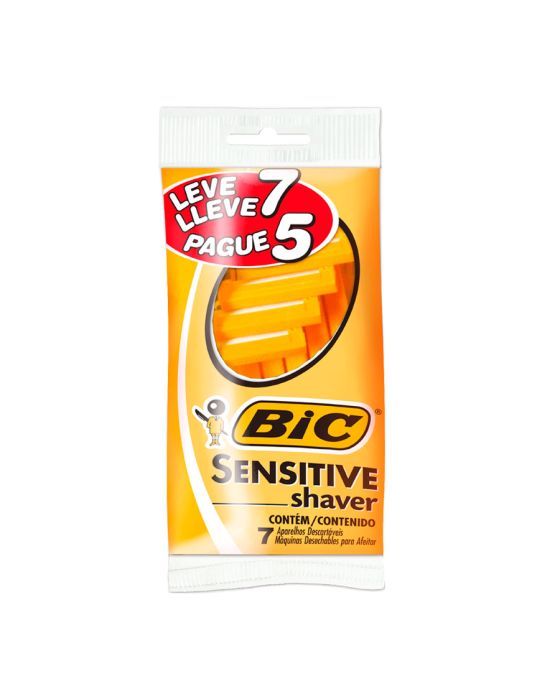 Características:O Clássico Barbeador Amarelinho da BIC!O Barbeador BIC Sensitive foi projetado para um barbear prático e econômico. Possui uma lâmina revestida de cromo super potente, com exclusiva capa protetora. Seu cabo é antideslizante, que auxilia na hora de barbear. Com todas essas vantagens, você terá um barbear sem dificuldades. Pensado para todos os tipos de pele e bolso, o BIC Amarelinho é o Barbeador clássico do mercado!Aproveite a qualidade e praticidade deste clássico Barbeador da BIC!Detalhes:- Marca: BIC;- Modelo: Sensitive Shaver;- Referência: 9306600;- Linha: Lâminas de barbear;- Cor: Laranja;- Quantidade: 7 unidades;- Contém: 1 blister com sete unidades do produto;- Embalagem promocional: Leve 7 pague 5;- 1 lâmina revestida de cromo;- Projetado para um barbear prático e econômico;- Lâmina revestida de cromo, com exclusiva capa protetora;- Cabo com estrias antideslizantes;- Oferece muito mais barbas com muito mais conforto;- Qualidade BIC.Indústria Brasileira | Validade: Indeterminado.Ideal para:- Consumidor doméstico, clínicas de depilação, salão de beleza e estúdios de tatuagens, e demais áreas.Composição:- Fabricado em Resinas termoplásticas e aço inoxidável revestido de cromo.ATENÇÃO: MANTENHA FORA DO ALCANCE DE CRIANÇAS E DOS ANIMAIS DOMÉSTICOS.* As especificações podem ser alteradas sem aviso prévio ** Imagem meramente ilustrativa.