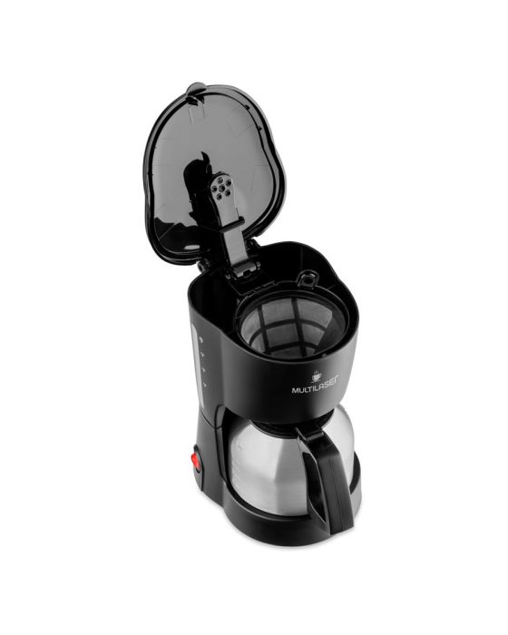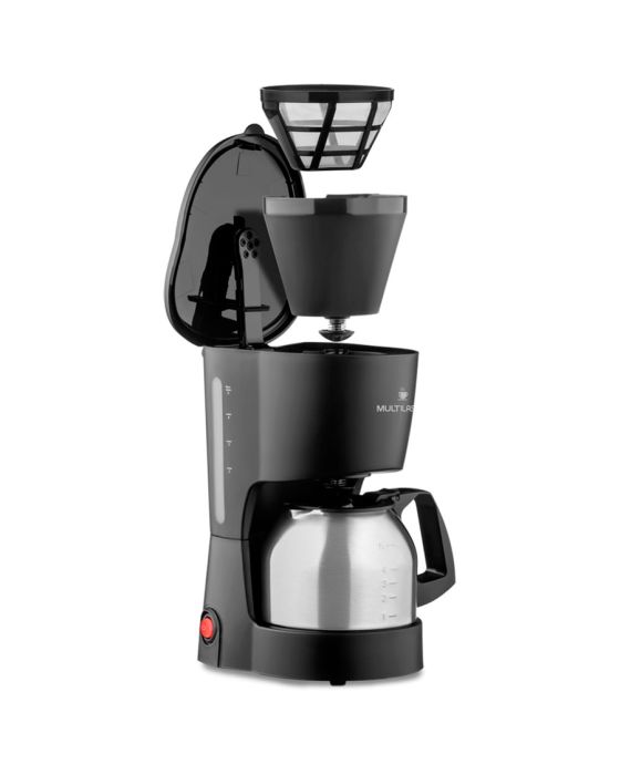 Caracteristicas:Café da manhã, dose pós almoço ou café da tarde, para você, sua família e seus convidados, essa cafeteira é capaz de servir até 15 xícaras de café. Essa cafeteira possui um sistema corta pingo e seu material é mais resistente do que vidro, devido ao seu material de aço inox, a jarra conserva a temperatura do líquido por mais tempo. Através do reservatório com visor, você tem um controle maior sobre a quantidade de água. Fácil de usar e limpar!- Serve 15 xícaras- Sistema corta pingo- Filtro permanente reutilizável incluso- Mais facilidade no seu dia-a-dia: Através do reservatório com visor, você tem maior controle sobre a quantidade de água.- Mais resistente que vidro: Por causa do seu material em aço inox, a jarra conserva a temperatura do líquido por mais tempo.Especificações- Capacidade: 600ml (15 xícaras)- Material da jarra: Inox- Tensão: 110V- Potência: 600W- Cor: Preta- Dimensões: 24,2 x 19,6 x 14,4cm- Peso: 860g- Conteúdo da embalagem: 1 cafeteira, manual do usuário.* As especificações podem ser alteradas sem aviso prévio ** Imagem meramente ilustrativa