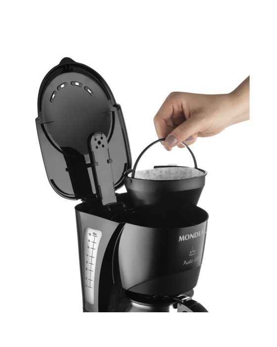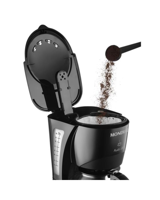 Características:A Cafeteira Elétrica Pratic 20 prepara até 20 xícaras de café. Com jarra de vidro fácil de lavar, sistema corta-pingos e base com aquecimento para café quente a qualquer hora. Ela ainda indica quantas xícaras serão feitas. Sua jarra de vidro não fica com resíduos e odores, podendo ser levada à mesa. Com seu sistema corta-pingos, você pode retirar a jarra para servir o café mesmo durante o preparo. Já a base com aquecimento conserva a temperatura, para você ter café quentinho por mais tempo sem alterar o sabor. Já a tampa basculante traz mais facilidade na hora de colocar a água e o pó de café. Esta cafeteira tem ainda um indicador de nível de água, mostrando quantas xícaras serão feitas, para você passar o café na medida certa. A Cafeteira Elétrica Pratic 20 foi desenvolvida para uso doméstico, residencial!Detalhes:- Marca: Mondial;- Modelo: Pratic;- Referência: CN-01-20X;- Linha: Cafeteiras;- Cor: Preta;- Tensão: 220V;- Contém: 1 unidade do produto;- Faz: 20 Xícaras de café;- Beleza All Black”: Design diferenciado e acabamento todo em preto que proporciona mais elegância à sua cozinha;- Filtro Permanente e Porta-Filtro Removível: A cafeteira é ecologicamente correta, pois dispensa a utilização do filtro de papel. O reaproveitamento do filtro proporciona mais economia e sustentabilidade;- Sistema Corta-Pingos: Permite a retirada da jarra para servir o café durante o preparo;- Indicador do Nível de Água: Permite o preparo da quantidade desejada de xícaras de café;- Tampa Basculante: Mais facilidade na hora de colocar a água e o pó de café.Reservatório:- Jarra de Vidro: A jarra é fácil de lavar e não deixa resíduos ou odores. O item também proporciona mais praticidade para levar à mesa e servir;- Base com Aquecimento: Conserva a temperatura do café.Energia:- Tensão: 220V;- Tipo de tomada: 10A;- Potência Máxima: 600W;- Comprimento do cabo: 1,50m.Medidas:- Dimensões: 28 x 22 x 17cm (AxLxP).- Peso: 910g.Conteúdo da embalagem: 01 Cafeteira e 1 Manual de Instruções.Garantia do fornecedor: 12 meses contra defeitos de fabricação.* As especificações podem ser alteradas sem aviso prévio ** Imagem meramente ilustrativa.* As especificações podem ser alteradas sem aviso prévio ** Imagem meramente ilustrativa.