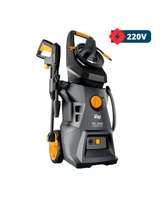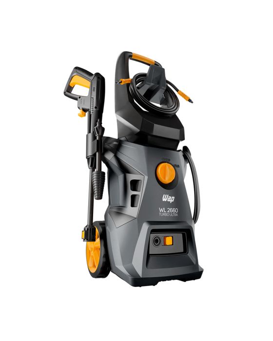 Características:- Lavadora de alta pressão turbo para limpezas pesadas e contínuas: A Lavadora de Alta Pressão WAP WL 2660 Turbo foi desenvolvida para entregar alto desempenho em limpezas intensas, unindo potência, eficiência e economia. Com 1800W de potência e funcionamento em 220V, é indicada para usuários que necessitam de um equipamento robusto, capaz de lidar com sujeiras difíceis em diferentes ambientes residenciais e externos.- Alto poder de remoção com pressão máxima de 2.000 PSI: Equipada com pressão máxima de 2.000 PSI e vazão de 420 L/h, a WL 2660 Turbo proporciona jatos de água fortes e constantes, ideais para remover sujeiras impregnadas com rapidez. O bico turbo gera jato rotativo concentrado, aumentando a área de impacto e a eficiência da limpeza, especialmente em superfícies mais resistentes.- Versatilidade para múltiplas aplicações: Projetada para atender diversas demandas, a lavadora é indicada para limpeza de pisos, paredes, carros, motos, bicicletas, jardins e áreas externas. O bico regulável permite ajustar o tipo de jato conforme a superfície, enquanto o aplicador de detergente auxilia na remoção de sujeiras mais pesadas, otimizando o tempo de trabalho.- Mobilidade, praticidade e economia de água: A mangueira de nylon de 5 metros e o cabo elétrico de 5 metros garantem maior liberdade de movimento durante o uso, reduzindo a necessidade de trocar de tomada. O sistema eletrônico Stop Total desliga automaticamente o motor ao soltar o gatilho, proporcionando mais segurança, menor desgaste do equipamento e economia de energia. Além disso, a WL 2660 Turbo oferece economia de até 80% de água quando comparada ao uso de mangueiras convencionais.- Construção segura e especificações técnicas: O equipamento conta com motor universal, bomba axial, classe de proteção IPX5 e classe de isolação II, assegurando resistência e confiabilidade no uso contínuo. Opera em 220V, frequência de 60 Hz, com nível de ruído de 90 dB(A), mantendo desempenho compatível com a categoria profissional leve.- Sobre a marca WAP: A WAP é referência no desenvolvimento de soluções para limpeza, reconhecida pela robustez, inovação e desempenho de seus produtos.- Itens inclusos na embalagem: 1 Bico Ajustável; 1 Mangueira de alta pressão 5 metros; 1 Cordão de Alimentação 5 metros; 1 Engate Rápido; 1 Aplicador de Detergente; 1 Agulha desobstruidora; 1 Bico turbo e 1 manual de instruções.- Garantia do fornecedor: 1 ano contra defeitos de fabricação.- Dimensões do produto: Comprimento: 32,9cm; Largura: 26,2cm; Altura: 70cm; Peso: 8,2kg.- Dimensões da embalagem: Comprimento: 42cm; Largura: 32,5cm; Altura: 49,5cm; Peso: 9,5kg.* As especificações podem ser alteradas sem aviso prévio ** Imagem meramente ilustrativa.