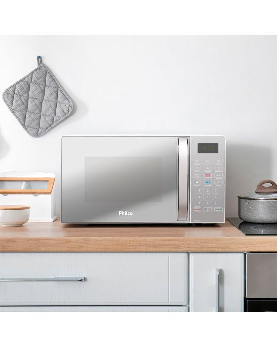 Características:O Micro-Ondas Philco PMO23E Multifunções Limpa Fácil 20L 1100W tem pintura Limpa Fácil especial que não permite que a sujeira grude nas paredes internas do micro-ondas, facilitando a limpeza do mesmo. A tecla Tira Odor é excelente para remoção de cheiro deixado pelo preparo de alimentos no interior do aparelho. Também tem a Função descongelar para descongela por tempo ou por peso. Função travar e o teclado será bloqueado. Função display que permite apagar o display do produto. Função Display/Sound que desliga o visor, se pressionar e segurar o botão por 3 segundos, o som do teclado desligará e Menu FIT que permite cozinhar batata, sopa e legumes. Detalhes:- Marca: Philco;- Modelo: Multifunções Limpa Fácil;- Referência: PMO23E;- Linha: Micro-Ondas;- Cor: Espelhado;- Tensão: 220V;- Potência 1100W;- Capacidade: 20L;- Contém: 1 unidade do produto;- Funções: Potência, Relógio, Display / Sound e Tirar Odor;- Teclas fáceis: FIT e Manter Aquecido;- Opções Descongelar Rápido ou Descongelar por Peso;- Prato com diâmetro de 250mm.Benefícios:- Pintura Limpa Fácil: Pintura especial que não permite que a sujeira grude nas paredes internas do micro-ondas, facilitando a limpeza;- Tira Odor: Auxilia na remoção de cheiro deixado pelo preparo de alimentos no interior do aparelho;- Menu FIT: É possível cozinhar batata, sopa e legumes.Funções:- Função descongelar: Descongela por tempo ou por peso;- Função travar: O teclado será bloqueado;- Função Display/Sound: Ao pressionar o botão uma vez desliga o visor, se pressionar e segurar o botão por 3 segundos, o som do teclado desligará. Capacidade: - Capacidade Total: 20L;- Capacidade Útil: 10L.Energia: - Tensão: 220V;- Potência: 1100W;- Consumo (kW/h): 1,1 kW/h;- Tomada (A): 10A;- Pinos (2 ou 3): 3 pinos;- Tamanho do cordão: 1 metro;- Classe A em eficiência energética.Composição:- Fabricado em Metal, Plástico e Vidro.Medidas:- Dimensões do produto: 45 x 35,3 x 26,2cm (CxLxA);- Dimensões da embalagem: 49 x 39,6 x 29cm (CxLxA);- Peso do produto: 12,44kg;- Peso da embalagem: 13,100kg.Conteúdo da embalagem: 1 Micro-Ondas PMO23E Multifunções Limpa Fácil 20L 1100W Philco, 1 Prato e suporte giratório, 1 Manual de instruções e 1 certificado de garantia. Garantia do fornecedor: 1 ano contra defeitos de fabricação.* As especificações podem ser alteradas sem aviso prévio ** Imagem meramente ilustrativa.