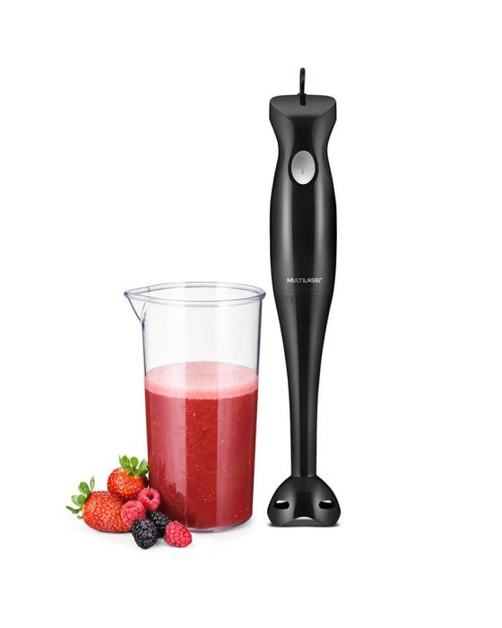 Caracteristicas:Mixer de Alimentos Multilaser Gourmet Preto, desenvolvido para preparar maioneses, vitaminas, sopas e muito mais!Com suas laminas de aço inoxidável, ele é resistente e com alta performance para triturar alimentos, possui design moderno, arrojado, super leve e de manuseio confortável, se tornando ideal para sua rotina. O Anel para pendurar serve para você colocar em um local pratico da sua cozinha e de fácil acesso, o botão de velocidade para ter resultados mais eficientes na cozinha, corpo desmontável para facilitar o armazenamento e a limpeza do produto, trava de segurança e proteção da lamina para garantir total segurança na palma de suas mãos.Deixe suas receitas mais práticas e inovadoras.Acompanha copo e guia de receitas!- Potência: 200W- Voltagem: 220V- Lâmina de aço inoxidável- Para uso em copo de 500ml- Corpo desmontável- Proteção de lâmina- Trava de segurança- Anel para pendurar- Cor: Preto- Dimensões: 38 x 4,6 x 5cm- Peso: 0,11kg- Garantia: 1 Ano contra defeitos de fabricação- Conteúdo da embalagem: 1 Mixer, 1 Copo PP, 1 Manual de Instruções* As especificações podem ser alteradas sem aviso prévio ** Imagem meramente ilustrativa.