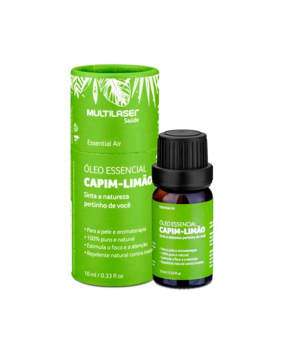 Características:Sinta a natureza pertinho de você!Detalhes:- Marca: Multi.- Modelo: Óleo Essencial - HC126.- Linha: Difusor de aromas.- Fragrância: Capim-Limão.- Cor embalagem: Verde claro.- Volume: 10ml.- Contém: 1 unidade do produto.- Principais funções: estimulante e energizante, intensifica o senso de foco e atenção, funciona como um repelente natural contra insetos.- Para a pele e aromaterapia.- 100% puro e natural.- Estimula o foco e a atenção.- Repelente natural contra insetos.Validade: 2 anos após aberto.Como usar o seu óleo essencial?Para massagem: - Misture algumas gotas com o seu óleo de massagem preferido, como o de coco, jojoba e Argan.Para Aromaterapia:- Pingue de 2 a 3 gotas de óleo essencial no local indicado do seu difusor de aromas ou umidificador.Para o banho:- Pingue algumas gotas do óleo essencial na sua banheira cheia de água.Para a pele:- Adicione uma gota do óleo essencial nos produtos preferidos da sua rotina de skin care.Importante:- Evitar uso do óleo em pessoas com pressão alta, epilepsia.ATENÇÃO: USO EXTERNO. NÃO INGERIR. EVITE CONTATO DIRETO COM OS OLHOS. NÃO APLIQUE O PRODUTO DIRETAMENTE NA PELE E SIM MISTURADO NOS SEUS CREMES, HIDRATANTES E SÉRUNS.MANTENHA LONGE DO ALCANCE DAS CRIANÇAS E DOS ANIMAIS DOMÉSTICOS!Garantia do fornecedor: 3 meses contra defeitos de fabricação a partir da data de sua compra desde que tenha sido utilizada corretamente.* As especificações podem ser alteradas sem aviso prévio ** Imagem meramente ilustrativa.