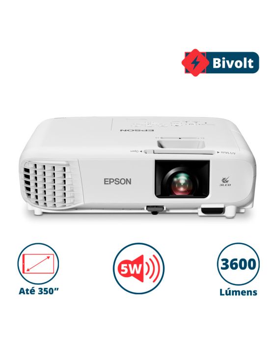 Características:- Projeção de alta performance para ambientes educacionais e corporativos: O Projetor Multimídia PowerLite E24 foi desenvolvido para oferecer uma experiência visual superior em espaços pequenos e médios. Combinando potência e economia, este equipamento utiliza a tecnologia 3LCD para entregar projeções vibrantes e envolventes, sendo a solução ideal para maximizar o aprendizado em salas de aula e a produtividade em reuniões de negócios.- Luminosidade intensa e precisão de cores com tecnologia 3LCD: Com 3.600 lúmens de brilho em cores e 3.600 lúmens de brilho em branco, o E24 garante imagens nítidas e visíveis mesmo em salas bem iluminadas. A tecnologia de 3 chips 3LCD oferece fidelidade de cor excepcional, enquanto a resolução nativa XGA (1024 x 768 pixels) assegura a legibilidade de textos e a definição de gráficos, proporcionando uma qualidade de imagem superior em telas de até 350 polegadas.- Durabilidade superior e redução de custos operacionais: Projetado com foco na longevidade e no baixo Custo Total de Propriedade (TCO), o projetor possui uma lâmpada de ultra longa duração que alcança até 12.000 horas no modo ECO. Essa eficiência energética, aliada a uma construção robusta, minimiza a necessidade de intervenções técnicas e trocas de lâmpadas, garantindo operação contínua e econômica.- Instalação versátil e configuração intuitiva: O design funcional do PowerLite E24 permite instalação e posicionamento práticos a partir de qualquer ponto da sala. Recursos como zoom digital, correção trapezoidal horizontal e vertical e a função Quick Corner agilizam o ajuste da imagem. Além disso, a funcionalidade de tela dividida (Split Screen) possibilita a projeção simultânea de dois conteúdos, facilitando a comparação de dados e apresentações dinâmicas.- Conectividade simplificada e recursos multimídia: Equipado com entrada HDMI, o projetor transmite vídeo e áudio de alta definição através de um único cabo, simplificando a conexão com notebooks e outros dispositivos. O alto-falante integrado de 5W oferece áudio claro para o ambiente, eliminando a necessidade de caixas de som externas para apresentações padrão e vídeos institucionais.- Aplicações e versatilidade: Ideal para escolas, universidades, centros de treinamento e escritórios corporativos, o PowerLite E24 é perfeito para quem busca confiabilidade e qualidade visual. Sua capacidade de adaptação a diferentes tamanhos de tela e ambientes o torna uma ferramenta essencial para apresentações profissionais, aulas interativas e videoconferências.- Sobre a marca Epson: Líder global em inovação e imagem, a Epson é referência mundial em projetores, destacando-se pela exclusiva tecnologia 3LCD que garante cores reais e alto desempenho. - Itens inclusos na embalagem: 1 PowerLite® E24, 1 Controle remoto, 2 pilhas AA para controle remoto, 1 Cabo de alimentação (1,8 m), 1 Guia de instalação, 1 certificado de Garantia e 1 Folha de registro.- Garantia do fornecedor: 1 ano contra defeitos de fabricação.- Dimensões do produto:Comprimento: 30,2cm;Largura: 24,9cm;Altura: 8,7cm;Peso: 2.37kg.* As especificações podem ser alteradas sem aviso prévio ** Imagem meramente ilustrativa.