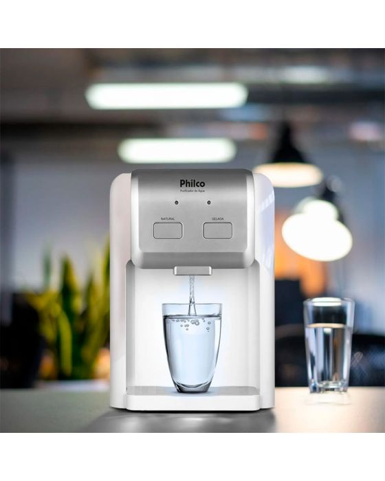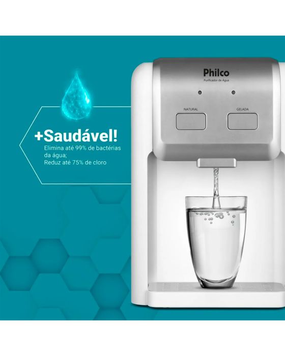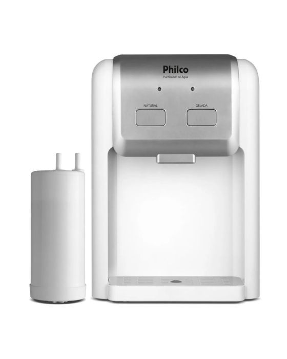 Caracteísticas:- Água saudável e refrescante a qualquer momento: O Purificador de Água Branco Philco PPU11C Bivolt foi desenvolvido para garantir praticidade e bem-estar no dia a dia, oferecendo água natural ou gelada com eficiência e qualidade. Compacto e moderno, pode ser instalado diretamente na rede de água sem a necessidade de garrafões, tornando-se uma solução prática e econômica para residências e ambientes corporativos.- Tecnologia de filtragem eficiente: Equipado com elemento filtrante em polipropileno e carvão ativado, o purificador Philco elimina até 99% das bactérias da água e reduz até 75% do cloro, proporcionando mais saúde e segurança para o consumo. Com capacidade de até 2000 litros de água filtrada ou 6 meses de autonomia, garante qualidade constante sem trocas frequentes de filtro.- Sistema de refrigeração eletrônico e design funcional: A refrigeração é feita por sistema eletrônico, oferecendo água gelada entre 6°C e 12°C, dependendo da temperatura ambiente, com capacidade de refrigeração de 0,600 L/h. O equipamento conta com bandeja coletora removível e dreno de água, facilitando a limpeza e manutenção. Sua torneira única possibilita fácil acionamento, enquanto o formato compacto permite instalação em diferentes espaços.- Eficiência energética e operação segura: Com tensão bivolt (127V ~ 220V), o purificador adapta-se facilmente a diferentes ambientes. Seu funcionamento garante vazão nominal de 0,300 L/h e suporta pressão de entrada entre 40kPa e 400kPa, além de operar em temperaturas entre 4°C e 40°C, assegurando desempenho estável em diferentes condições.- Marca de confiança: A Philco é uma das marcas mais reconhecidas no mercado de eletrodomésticos, unindo tradição, inovação e qualidade em soluções que facilitam a rotina dos consumidores. - Itens inclusos na embalagem: 1 Purificador de água, 1 filtro e acessórios para instalção.- Garantia do fornecedor: Garantia limitada de 1 ano contra defeitos de fabricação.- Dimensões do produto:Comprimento: 26cm;Largura: 29,6cm;Altura: 38cm;Peso: 4kg.* As especificações podem ser alteradas sem aviso prévio ** Imagem meramente ilustrativa.