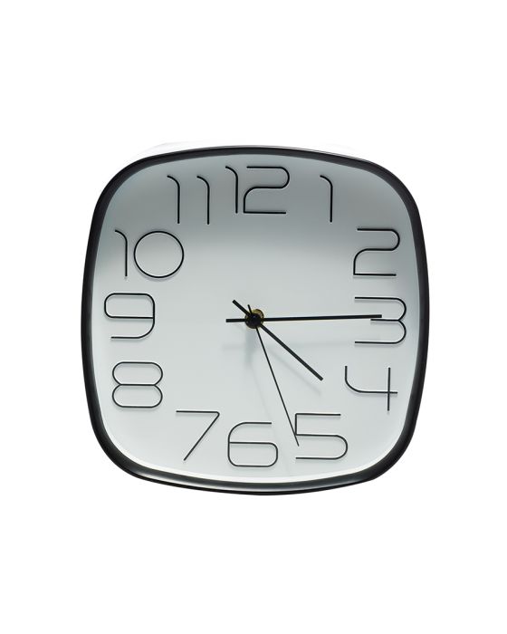 Características:Design ModernoCom sua forma quadrada e acabamento em preto elegante, este relógio adiciona um toque de modernidade e sofisticação a qualquer parede, seja na sala de estar, cozinha, escritório ou quarto.Fácil LeituraOs números grandes e as mãos contrastantes tornam a hora fácil de ler, garantindo que você esteja sempre no horário, enquanto o design minimalista acrescenta um visual contemporâneo ao ambiente.Dimensões IdeaisCom 25,5cm x 25,5cm x 5cm, o tamanho deste relógio é perfeito para se destacar na parede sem ocupar muito espaço, adicionando um toque de elegância discreta ao ambiente.Detalhes:- Marca: Wolff;- Modelo: Square;- Referência: 61653;- Linha: Relógio;- Cor fundo: Branco;- Cor moldura: Preto;- Cor números e ponteiros: Preto;- Alimentação: 1 pilha AA (não inclusa);- Contém: 1 unidade do produto;- Design moderno;- Relógio de fácil leitura.Ideal para:- Empresas, escritórios, lojas, restaurantes, hotéis, bares e demais ambientes,Limpeza e cuidados:- Limpar com flanela branca e seca.Composição: - Fabricado em plástico e metal.Medidas:- Dimensões do produto: 25,5 x 25,5 x 5cm (CxLxA);- Dimensões da embalagem: 26,2 x 29 x 5,3cm (CxLxA);- Peso: 0,33kg.Conteúdo da embalagem: 1 Relógio de Parede Plástico Square Preto/Branco 61653 Wolff. As especificações podem ser alteradas sem aviso prévio ** Imagem meramente ilustrativa.