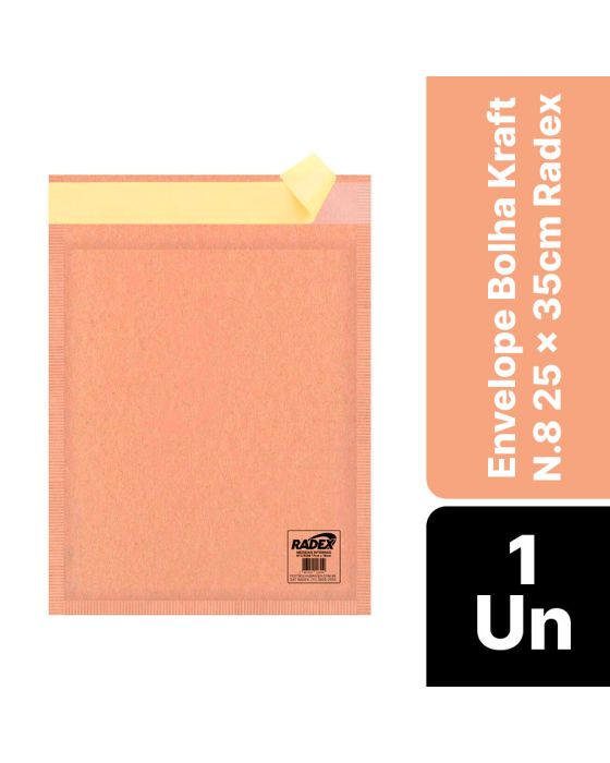 Características:Com o Envelope Bolha Kraft Radex, você poderá fazer o envio de produtos via e-commerce ou produtos delicados com a máxima segurança e proteção. Com interior revestido com plástico bolha, garante que o produto fique sem arranhões e risco de quebra no transporte, seja de carro, moto, avião, caminhão ou navio, e possui fita que garante confidencialidade e lacrando com eficiência o envelope!Detalhes:- Marca: Radex;- Linha: Envelopes;- Tipo: Interno com plástico bolha;- Cor: Marrom (Kraft);- Formato: Número 8 (Ofício);- Tamanho: 25 x 35cm (LxC);- Contém: 1 unidade do produto;- Com fita autocolante;- Proteção máxima;- Múltiplas utilidades;- Confidencialidade e praticidade;- Segurança e proteção.Indústria Brasileira. | Validade: Indeterminada.Ideal para:- Ideal para envio de compras on-line (E-commerce), envio de componentes eletrônicos, Smartphones, equipamentos de informática, mídias, peças automotivas, insumos químicos, óticos, odontológicos, hospitalares, bijuterias, itens de papelaria, documentos e diversos tipos de materiais que necessitam de um embalagem especial.Benefícios:- Confidencialidade e Segurança: Envio com máxima proteção e garantia de produtos intactos;- Praticidade e Agilidade: Pronto para uso e maior rapidez no despachos dos produtos;- Proteção e Economia: Acondicione o produto de forma correta e menor custo de envio. Modo de uso:- Posicione o produto dentro do envelope;- Retire a proteção amarela da fita;- Cole a aba com a fita no corpo do envelope para lacrar e deixar pronto para o envio.Conservação:- Conservar em local seco.Composição:- Fabricado em papel Kraft, plástico bolha e PE.Medidas:- Dimensões do produto: 27,5 x 39 x 0,5cm (CxLxA);- Peso: 26g.* As especificações podem ser alteradas sem aviso prévio ** Imagem meramente ilustrativa.