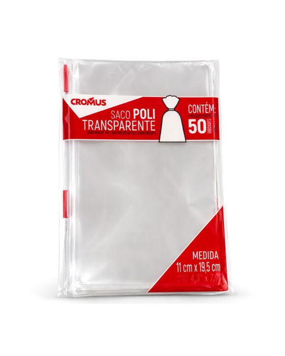 Características:- Saco plástico transparente 11x19,5cm em polipropileno para acondicionamento e apresentação de itens diversos: O Saco Plástico Polipropileno Transparente 11 x 19,5cm Cromus foi desenvolvido para armazenamento, proteção e apresentação de produtos com praticidade e visibilidade. Fabricado em material plástico leve e resistente, permite fácil identificação do conteúdo, sendo ideal para organização e embalagem de itens variados.- Praticidade no uso com formato versátil e quantidade econômica: Fornecido em pacote com 50 unidades, atende demandas frequentes de embalagem em ambientes comerciais e domésticos. Seu tamanho ampliado em relação a modelos menores possibilita acondicionar itens de pequeno e médio porte com maior flexibilidade.- Material transparente com resistência adequada e uso funcional: Produzido em polipropileno ou polietileno, oferece proteção básica contra sujeira e manuseio, mantendo a integridade dos itens acondicionados. Não possui sistema de fechamento adesivo, permitindo personalização com fitas, lacres ou outros métodos de vedação.- Indicado para embalagens, organização e apresentação de produtos: Recomendado para embalar doces, lembrancinhas, brindes, acessórios e itens do dia a dia. Ideal para uso em festas, comércios, papelarias e organização doméstica, garantindo apresentação limpa e prática.- Sobre a marca Cromus: A Cromus é referência no mercado de embalagens e artigos para presentes e decoração, reconhecida pela qualidade, variedade e inovação de seus produtos.- Dimensões da embalagem:Comprimento: 21cm;Largura: 12cm;Altura: 0,5cm;Peso: 30g.ATENÇÃO! MANTENHA FORA DO ALCANCE DAS CRIANÇAS, RISCO DE ASFIXIA!* As especificações podem ser alteradas sem aviso prévio ** Imagem meramente ilustrativa.