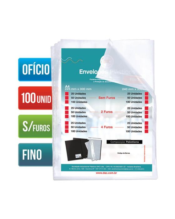 Envelope Plastico Oficio Fino S/ Furo 6 Micras C/100 Ref 5069 Dac