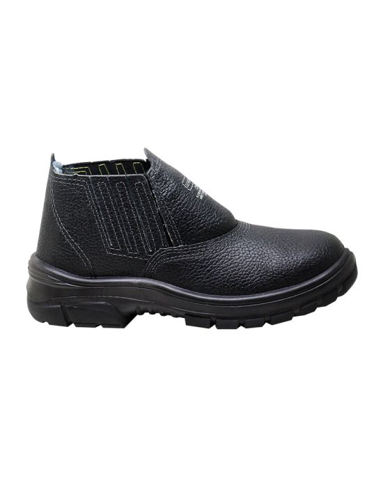 Características:A Bota Elástico Kadesh Combat, preta, com solado em poliuretano (PU) garante o conforto e a proteção necessária para enfrentar o dia-a-dia em diversos ambientes de trabalho. Atende as normas da ABNT NBR ISO.Detalhes:- Marca: Kadesh;- Modelo: Combat;- Referência: 1000;- Linha: Sapatos de proteção individual;- Cor: Preto;- Tipo: Biqueira PVC;- Tamanho: Número 38;- CA: 43.108;- Norma: ABNT NBR ISO;- Contém: 1 par de sapato;- Possui palmilha;- Possui biqueira para proteção;- Antiderrapante.Indústria Brasileira.Ideal para:- Indicado para o uso nos segmentos hotelaria, serviços gerais, prestadoras de serviços, limpeza urbana, madeireiras, construção civil e indústrias.Diferenciais:- Confeccionado 100% em couro, 18/20 mm linhas de espessura, com fechamento em elástico lateral, e costuras simples, duplas e quádruplas;- Forração da gáspea em não tecido transpirável com dorso acolchoado, contraforte em material resinado termoativado, e forro suador em não tecido respirável;- Palmilha de montagem sintética, não tecido, costurada pelo sistema strobel e sobrepalmilha de conforto em EVA, removível, dublada em tecido para absorção do suor. Reduz o impacto proporcionando conforto aos pés e um caminhar uniforme e suave;- Solado em poliuretano (PU), injetado diretamente no cabedal, com função antiderrapante e alta resistência ao desgaste. Possui sistema de absorção de impactos e desenho plantar rebaixado para melhor mobilidade ao caminhar.Orientações:- Segurança: Para ter a segurança necessária, utilize o calçado correto para finalidade a que se destina. Use a numeração correta, pois assim evitará possíveis incidentes. Deve ser levado em consideração para a seleção do melhor modelo os perigos e riscos envolvidos na atividade;- Secagem: O calçado deve ser guardado em um local arejado, longe do calor e da umidade. Nunca exponha o calçado ao calor intenso, aquecedores, estufas, fogões e ao sol. As condições ideais de armazenamento são a 27°C e 63% de umidade. Fazendo isso, você evita a ocorrência de hidrólise, processo em que o calor e a umidade formam moléculas de água que reagem com os produtos químicos do solado de poliuretano, causando sua decomposição;- Limpeza e Higienização: Limpe apenas externamente, com pano ligeiramente úmido, utilizando apenas água e detergente neutro. Dentro do calçado, utilize um pano ligeiramente úmido com álcool para higienizar. As palmilhas podem ser lavadas naturalmente com água e sabão;- Revezamento: Adote o revezamento e alterne o uso dos sapatos (deixe um par totalmente aberto por pelo menos 24 horas). Assim o calçado respira e permite que a transpiração acumulada durante o uso possa ser liberada para o exterior, mantendo-os higienizados e confortáveis, evitando o surgimento de bactérias, fungos e mau cheiro. Caso não seja possível possuir dois pares, uma opção é usar duas palmilhas alternadas.Recomendação:- O suor é fator determinante para danificar um calçado. Portanto, é muito importante o uso das meias de algodão para auxiliar na absorção do suor liberado pelos pés. A troca das meias deve ser feita todos os dias, não as reutilize antes de lavá-las;- Nunca modifique seu calçado, além de alterar as características e automaticamente perder a Certificação de Autorização – C.A. do MTE, pode gerar riscos de acidentes;- O descarte do calçado de segurança deve ser feito corretamente por empresas habilitadas, por exemplo coprocessados em fornos de cimento.Composição:- Solado: Solado em poliuretano (PU), injetado diretamente no cabedal;- Biqueira: Em PP (polipropileno), com reforço frontal e formato anatômico;- Palmilha: Palmilha de montagem sintética, não tecido, costurada pelo sistema strobel e sobrepalmilha de conforto em EVA;- Forração: Forração da gáspea em não tecido transpirável com dorso acolchoado, contraforte em material resinado termoativado, e forro suador em não tecido respirável.- Cabedal: Confeccionado 100% em couro, 1,8/2,0 mm (18/20 linhas) de espessura.Medidas:- Dimensões do produto: 27 x 19 x 13cm (CxLxA);- Peso: 527g.Garantia do fornecedor: 90 dias contra defeitos de fabricação.*Verifique se o CA escolhido atende as suas necessidades de segurança. Em caso de dúvida, consulte sempre o seu profissional de segurança do trabalho.* As especificações podem ser alteradas sem aviso prévio ** Imagem meramente ilustrativa.