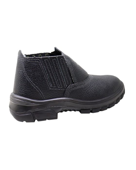 Características:A Bota Elástico Kadesh Combat, preta, com solado em poliuretano (PU) garante o conforto e a proteção necessária para enfrentar o dia-a-dia em diversos ambientes de trabalho. Atende as normas da ABNT NBR ISO.Detalhes:- Marca: Kadesh;- Modelo: Combat;- Referência: 1000;- Linha: Sapatos de proteção individual;- Cor: Preto;- Tipo: Biqueira PVC;- Tamanho: Número 41;- CA: 43.108;- Norma: ABNT NBR ISO;- Contém: 1 par de sapato;- Possui palmilha;- Possui biqueira para proteção;- Antiderrapante.Indústria Brasileira.Ideal para:- Indicado para o uso nos segmentos hotelaria, serviços gerais, prestadoras de serviços, limpeza urbana, madeireiras, construção civil e indústrias.Diferenciais:- Confeccionado 100% em couro, 18/20 mm linhas de espessura, com fechamento em elástico lateral, e costuras simples, duplas e quádruplas;- Forração da gáspea em não tecido transpirável com dorso acolchoado, contraforte em material resinado termoativado, e forro suador em não tecido respirável;- Palmilha de montagem sintética, não tecido, costurada pelo sistema strobel e sobrepalmilha de conforto em EVA, removível, dublada em tecido para absorção do suor. Reduz o impacto proporcionando conforto aos pés e um caminhar uniforme e suave;- Solado em poliuretano (PU), injetado diretamente no cabedal, com função antiderrapante e alta resistência ao desgaste. Possui sistema de absorção de impactos e desenho plantar rebaixado para melhor mobilidade ao caminhar.Orientações:- Segurança: Para ter a segurança necessária, utilize o calçado correto para finalidade a que se destina. Use a numeração correta, pois assim evitará possíveis incidentes. Deve ser levado em consideração para a seleção do melhor modelo os perigos e riscos envolvidos na atividade;- Secagem: O calçado deve ser guardado em um local arejado, longe do calor e da umidade. Nunca exponha o calçado ao calor intenso, aquecedores, estufas, fogões e ao sol. As condições ideais de armazenamento são a 27°C e 63% de umidade. Fazendo isso, você evita a ocorrência de hidrólise, processo em que o calor e a umidade formam moléculas de água que reagem com os produtos químicos do solado de poliuretano, causando sua decomposição;- Limpeza e Higienização: Limpe apenas externamente, com pano ligeiramente úmido, utilizando apenas água e detergente neutro. Dentro do calçado, utilize um pano ligeiramente úmido com álcool para higienizar. As palmilhas podem ser lavadas naturalmente com água e sabão;- Revezamento: Adote o revezamento e alterne o uso dos sapatos (deixe um par totalmente aberto por pelo menos 24 horas). Assim o calçado respira e permite que a transpiração acumulada durante o uso possa ser liberada para o exterior, mantendo-os higienizados e confortáveis, evitando o surgimento de bactérias, fungos e mau cheiro. Caso não seja possível possuir dois pares, uma opção é usar duas palmilhas alternadas.Recomendação:- O suor é fator determinante para danificar um calçado. Portanto, é muito importante o uso das meias de algodão para auxiliar na absorção do suor liberado pelos pés. A troca das meias deve ser feita todos os dias, não as reutilize antes de lavá-las;- Nunca modifique seu calçado, além de alterar as características e automaticamente perder a Certificação de Autorização – C.A. do MTE, pode gerar riscos de acidentes;- O descarte do calçado de segurança deve ser feito corretamente por empresas habilitadas, por exemplo coprocessados em fornos de cimento.Composição:- Solado: Solado em poliuretano (PU), injetado diretamente no cabedal;- Biqueira: Em PP (polipropileno), com reforço frontal e formato anatômico;- Palmilha: Palmilha de montagem sintética, não tecido, costurada pelo sistema strobel e sobrepalmilha de conforto em EVA;- Forração: Forração da gáspea em não tecido transpirável com dorso acolchoado, contraforte em material resinado termoativado, e forro suador em não tecido respirável.- Cabedal: Confeccionado 100% em couro, 1,8/2,0 mm (18/20 linhas) de espessura.Medidas:- Dimensões do produto: 28,5 x 23 x 13cm (CxLxA);- Peso: 580g.Garantia do fornecedor: 90 dias contra defeitos de fabricação.*Verifique se o CA escolhido atende as suas necessidades de segurança. Em caso de dúvida, consulte sempre o seu profissional de segurança do trabalho.* As especificações podem ser alteradas sem aviso prévio ** Imagem meramente ilustrativa.