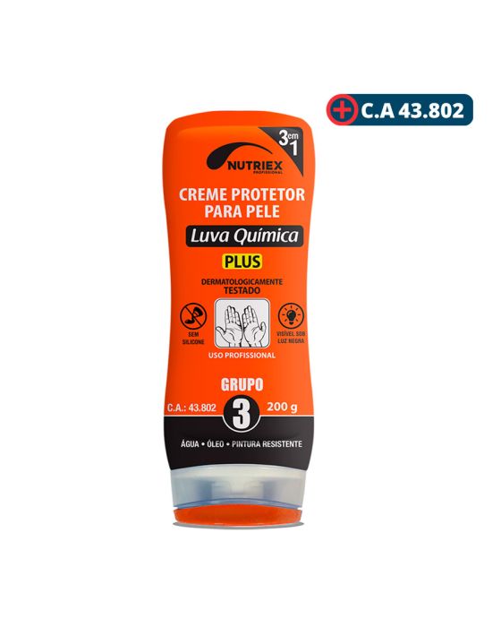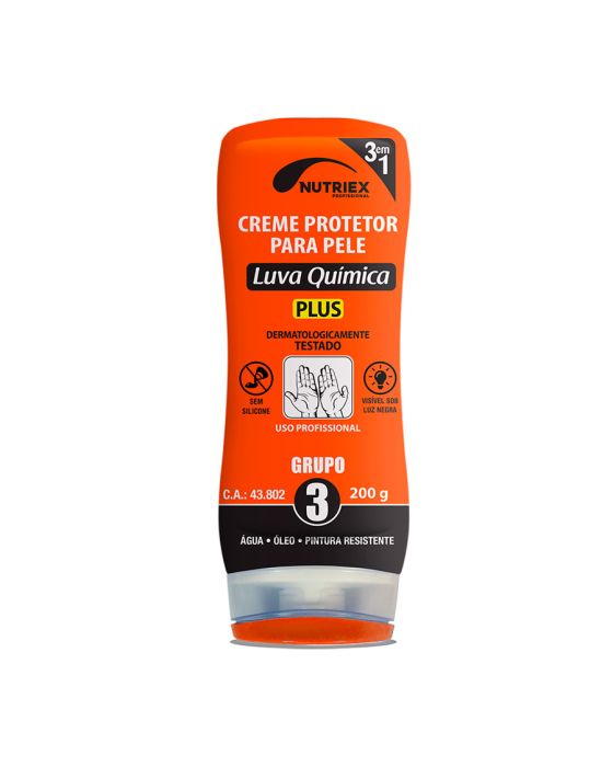 Características:- Proteção eficaz contra agentes químicos: O Creme Protetor para Pele Luva Química 200g Nutriex foi desenvolvido especialmente para ambientes industriais e profissionais que exigem alto nível de segurança. Classificado como Grupo 3, o produto forma uma película invisível sobre a pele, atuando como barreira protetora contra óleos, solventes, ácidos, graxas, colas, pós e diversos outros agentes agressivos.- Alta performance sem perda de sensibilidade: Sua fórmula permite a execução de tarefas manuais com total sensibilidade ao tato, garantindo que o trabalhador mantenha a precisão necessária em atividades delicadas ou repetitivas. Além disso, o creme é livre de silicone e testado dermatologicamente, o que assegura maior conforto, segurança e compatibilidade com diferentes tipos de pele.- Uso prático e profissional: Para garantir sua eficácia, basta aplicar uma fina camada sobre as mãos e áreas expostas (como antebraços) antes do início das atividades. O produto deve ser reaplicado a cada 4 horas ou após a lavagem das mãos, garantindo proteção contínua durante toda a jornada de trabalho. O creme ainda é visível sob luz negra, o que possibilita a inspeção da correta aplicação.- Tradição e confiança Nutriex: Com décadas de experiência no desenvolvimento de produtos voltados à saúde, higiene e segurança do trabalho, a Nutriex é reconhecida no mercado por sua qualidade e inovação em soluções que protegem profissionais em diferentes segmentos. Sua linha de cremes protetores é referência nacional, oferecendo confiabilidade para empresas e trabalhadores.- Especificações técnicas:Classificação: Grupo 3 – proteção contra água, óleo, solventes e tintas.Certificado de Aprovação (C.A.): 43.702.Tipo: Creme protetor para pele – Luva QuímicaComposição: Água, álcool cetoestearílico, cetomacrogol 1000, monoestearato de glicerila, butilhidroxitolueno, isopropanolamine, petrolato amarelo, petrolato líquido, glicerol, fenoxietanol/ metilparabeno/ etilparabeno/ propilparabeno/ butilparabeno, copolímero VP / eicosene, lanolina, crosspolímero acrilatos/C10-30 alquil acrilato, distirilbifenil dissulfonato dissódico, amido de tapioca/ polimetilsilsesquioxano, perfume (alfa-isometilionona, amil cinamaldeído, benzoato de benzila, salicilato de benzila, álcool cinamílico, citronelol, cumarina, geraniol, hexil cinamaldeído, hidroxicitronelal, linalol).- Dimensões da embalagem:Comprimento: 6,5cm;Largura: 3,5cm;Altura: 19cm;Peso: 243g.Para consultar a FDS (Ficha com Dados de Segurança), acesse (copiar e colar no navegador):https://preview--consultafdscontabilista.base44.app/share?product_id=103815ATENÇÃO! MANTENHA FORA DO ALCANCE DAS CRIANÇA E DOS ANIMAIS DOMÉSTICOS!* As especificações podem ser alteradas sem aviso prévio ** Imagem meramente ilustrativa.