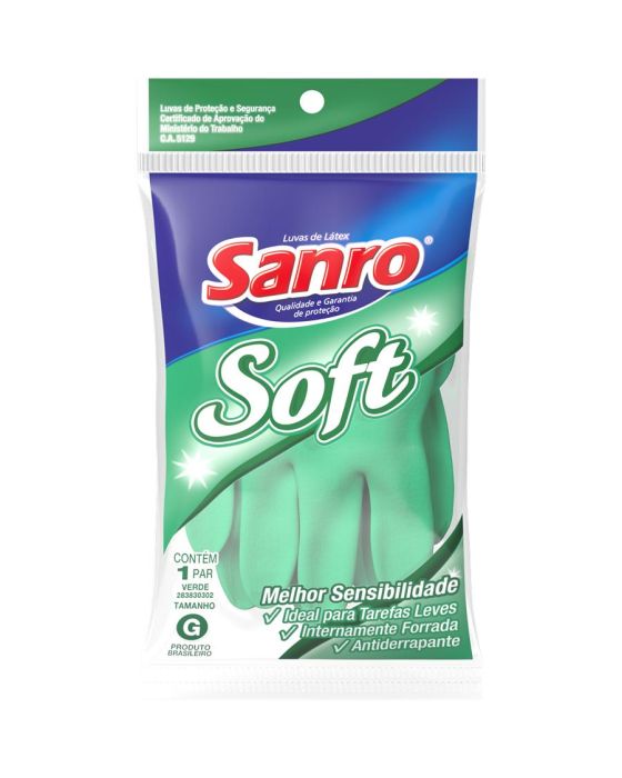 Caracteristicas:As luvas Sanro Soft são macias e confortáveis, elaboradas com látex de alta qualidade, antiderrapantes e com o interior forrado com flocos de algodão.ideais para trabalhos que exigem maior sensibilidade tátil. Elas são indicadas para tarefas mais sensíveis, portanto, ideais para contato com objetos que necessitem de muita sensibilidade no manuseio. As luvas Sanro Soft são também indicadas para tarefas de faxina e limpeza doméstica, por conferirem um excelente tato e destreza, com a espessura “na medida certa”.Possuem certificado de aprovação do Ministério do Trabalho e Emprego – C.A. do MTE – número 5129. - Cor: Verde- Tamanho: M (7)- Acabamento interno: flocos de algodão- Local de texturização: palma e dedos- Tamanhos: pequeno, médio e grande- Espessura média na palma: 0,50 mm com flocos- Comprimento médio: 300 mm- Utilização de pó: sim- Acabamento no punho: com borda (virola)- Formato: anatômico- Formato dedos: curvos- Quantidade por embalagem: um par* As especificações podem ser alteradas sem aviso prévio ** Imagem meramente ilustrativa