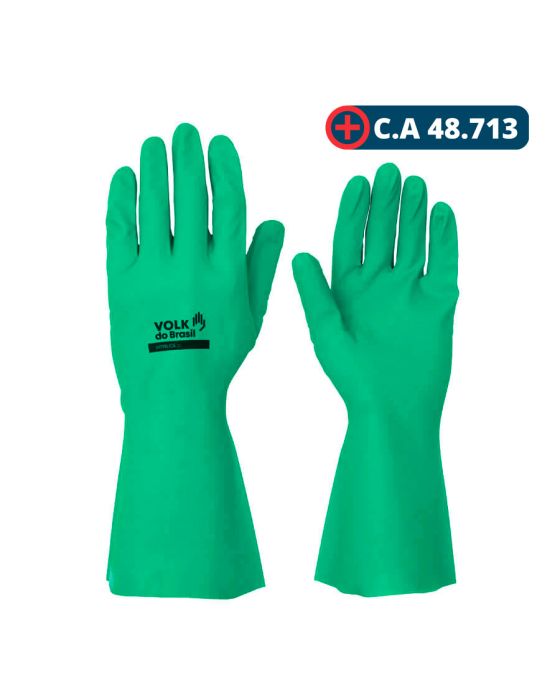 Características:- Luva de segurança nitrílica com forro em algodão e acabamento antiderrapante para proteção química: A Luva Nitrílica com Forro Verde EG da Volk foi desenvolvida para oferecer proteção eficiente contra agentes químicos e mecânicos em atividades profissionais. Confeccionada 100% em nitrila, livre de proteínas do látex, possui revestimento interno com flocos de algodão que proporcionam maior conforto e absorção de suor durante o uso.- Proteção química e biológica de alto desempenho: Indicada para trabalhos leves e médios, a luva oferece resistência contra solventes, produtos cáusticos, óleos, gorduras, combustíveis, detergentes e pesticidas. Atende às normas EN374 (A2C1F1J6K6N3O6P6T6) para resistência química e ISO 374-5 para proteção contra fungos e bactérias, além de resistência mecânica conforme EN388 (3101X).- Aderência superior e segurança operacional: Possui relevo antiderrapante em formato diamante na palma e ponta dos dedos, garantindo excelente aderência mesmo em ambientes com presença de líquidos. Esse design permite melhor escoamento de fluidos, evitando acúmulo na superfície da luva e aumentando a segurança no manuseio.- Conforto, ajuste e durabilidade: O formato anatômico reduz a fadiga muscular durante o uso prolongado, enquanto o punho reto facilita a ventilação e evita acúmulo de resíduos. O forro interno em algodão flocado melhora o conforto térmico e a absorção de umidade. Produto reutilizável e lavável, contribuindo para maior durabilidade e redução de custos operacionais.- Versatilidade de aplicações: Indicada para atividades como pintura, aplicação de vernizes, higienização e limpeza, manuseio de alimentos (açougue e processamento), além de operações industriais e manutenção. Pode ser utilizada sobre outras luvas (corte ou térmicas) para proporcionar proteção impermeável adicional.- Sobre a marca Volk: A Volk é reconhecida no mercado de equipamentos de proteção individual (EPI), desenvolvendo soluções voltadas à segurança do trabalhador em diferentes setores industriais e profissionais.- Especificações técnicas:Certificação: CA 48.713.Tamanho: 9 (G).- Dimensões do produto:Comprimento: 23,5cm;Largura: 13,5cm;Altura: 0,1cm;Peso: 5g.*Verifique se o CA escolhido atende as suas necessidades de segurança. Em caso de dúvida, consulte sempre um profissional de segurança do trabalho.* As especificações podem ser alteradas sem aviso prévio ** Imagem meramente ilustrativa.