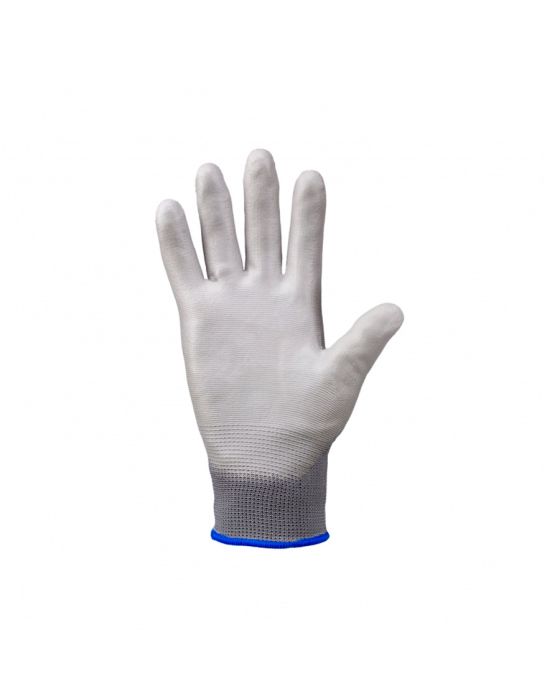 Caracteristicas:Luva de segurança tricotada em nylon. Palma, face palmar dos dedos e ponta dos dedos com revestimento em poliuretano, punho com elastano.- Sensibilidade tátil- Antiestática- Palma antiderrapante- Possui respirabilidade- Conforto anatomico- Protege objetos contra oxidação- Resistencia termica 100°- Ideal para ambientes com maior sujidade- Tamanho: G- Cor: CinzaAplicação: Este modelo de luva pode ser utilizado em diversos segmentos, tais como: Logística, transportes, expedição, carga e descarga de materiais, indústria metal-mecânica, industria da mineração, indústria automotiva / montadoras, autocenters, componentes eletrônicos, montagem e manuseio de chicotes elétricos não energizados, linhas de montagem, manutenção predial e industrial, serviços de hotelaria, indústria florestal, indústria da aviação, indústria termoplástica, agricultura, comércio, colheita, indústria da cerâmica, entre outros.Recomendações gerais- Instruções de uso: - Selecione a luva com o tamanho adequado às suas mãos - Verifique sempre os riscos da atividade a ser desenvolvida (riscos mecânicos, químicos, biológicos, térmicos, etc) - Para sua segurança, não faça uso de nenhum tipo de adorno - Para melhor desempenho do produto, evite o uso com as unhas compridas - Antes de calçá-las, lave e seque bem as mãos - Faça o ajuste correto das luvas aos dedos, mãos e punhos - Substitua imediatamente a luva, quando apresentar danos - Escolha a luva correta para cada atividade a ser desempenhada - Não utilize este produto para manuseio de produtos líquidos - Para seleção correta do EPI, consulte um profissional capacitado em Segurança do Trabalho- Conservação e limpeza: - A guarda da luva deve ser realizada em local seco, arejado, protegido do sol e de intempéries - A substituição deve ser imediata quando a luva apresentar danos como: rasgos, furos, deformação e outras situações que apresentem riscos de acidentes ou doenças ocupacionais - Não se recomenda higienização industrial na luva, esta prática pode comprometer o material que compõe o produto e oferecer riscos ao usuário - Para realização de limpeza, utilize sabão ou detergente neutro e água limpa - repita a lavagem se necessário - Nunca utilize solventes ou produtos similares para realizar a limpeza da luvaNão se espera deste produto nenhuma reação adversa ao uso. Produto livre de látex natural. * As especificações podem ser alteradas sem aviso prévio ** Imagem meramente ilustrativa