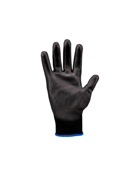 Caracteristicas:Luva de segurança tricotada em nylon. Palma, face palmar dos dedos e ponta dos dedos com revestimento em poliuretano, punho com elastano.- Sensibilidade tátil- Antiestática- Palma antiderrapante- Possui respirabilidade- Conforto anatomico- Protege objetos contra oxidação- Resistencia termica 100°- Ideal para ambientes com maior sujidade- Tamanho: G- Cor: PretoAplicação: Este modelo de luva pode ser utilizado em diversos segmentos, tais como: Logística, transportes, expedição, carga e descarga de materiais, indústria metal-mecânica, industria da mineração, indústria automotiva / montadoras, autocenters, componentes eletrônicos, montagem e manuseio de chicotes elétricos não energizados, linhas de montagem, manutenção predial e industrial, serviços de hotelaria, indústria florestal, indústria da aviação, indústria termoplástica, agricultura, comércio, colheita, indústria da cerâmica, entre outros.Recomendações gerais- Instruções de uso: - Selecione a luva com o tamanho adequado às suas mãos - Veri que sempre os riscos da atividade a ser desenvolvida (riscos mecânicos, químicos, biológicos, térmicos, etc) - Para sua segurança, não faça uso de nenhum tipo de adorno - Para melhor desempenho do produto, evite o uso com as unhas compridas - Antes de calçá-las, lave e seque bem as mãos - Faça o ajuste correto das luvas aos dedos, mãos e punhos - Substitua imediatamente a luva, quando apresentar danos - Escolha a luva correta para cada atividade a ser desempenhada - Não utilize este produto para manuseio de produtos líquidos - Para seleção correta do EPI, consulte um profissional capacitado em Segurança do Trabalho- Conservação e limpeza: - A guarda da luva deve ser realizada em local seco, arejado, protegido do sol e de intempéries - A substituição deve ser imediata quando a luva apresentar danos como: rasgos, furos, deformação e outras situações que apresentem riscos de acidentes ou doenças ocupacionais - Não se recomenda higienização industrial na luva, esta prática pode comprometer o material que compõe o produto e oferecer riscos ao usuário - Para realização de limpeza, utilize sabão ou detergente neutro e água limpa - repita a lavagem se necessário - Nunca utilize solventes ou produtos similares para realizar a limpeza da luvaNão se espera deste produto nenhuma reação adversa ao uso. Produto livre de látex natural. * As especificações podem ser alteradas sem aviso prévio ** Imagem meramente ilustrativa