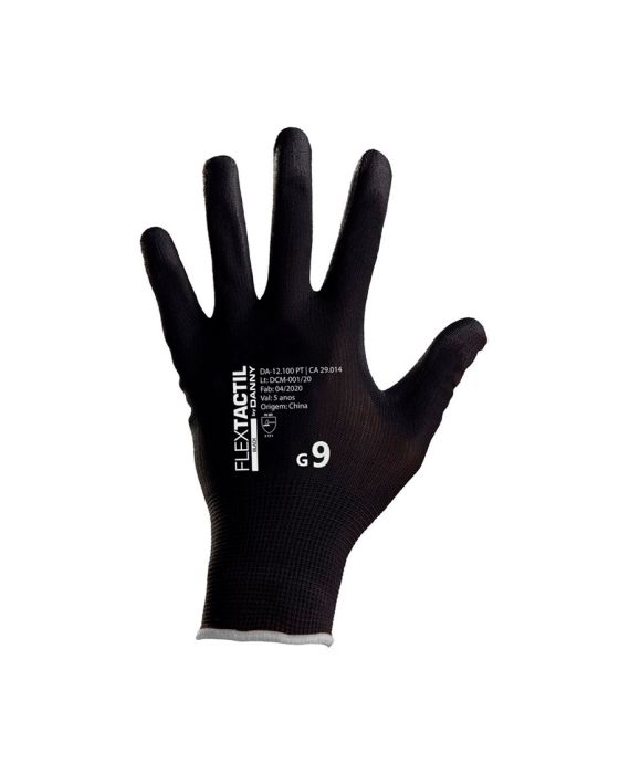 Características:- Proteção sem perda de tato em atividades profissionais: A Luva Tricotada Flextáctil Preta Danny é confeccionada em nylon com recobrimento em poliuretano na palma, face palmar e ponta dos dedos, proporcionando excelente destreza, precisão nos movimentos e manuseio seguro de peças secas ou úmidas. Seu formato anatômico e punho elástico garantem ajuste perfeito às mãos, reduzindo a fadiga muscular mesmo em longos períodos de trabalho.- Alta resistência e desempenho técnico: Desenvolvida para suportar as exigências de diferentes setores, a luva oferece excelente performance abrasiva conforme norma EN 388 (3131A), além de resistência térmica de até 100°C em calor de contato. A cor preta aumenta sua durabilidade, disfarçando sujidades e prolongando sua vida útil em comparação às luvas tradicionais de malha.- Proteção antiestática e conforto superior: Com propriedade antiestática dissipativa, a luva protege equipamentos eletroeletrônicos contra descargas durante o manuseio. Seu dorso ventilado contribui para maior conforto térmico, enquanto a estrutura em nylon evita o desprendimento de fiapos, preservando a qualidade das peças manipuladas.- Versatilidade de uso: Indicada para indústrias metalmecânica, automobilística, moveleira, construção civil, montagem e manutenção em geral, sendo uma solução de excelente custo-benefício para quem busca proteção, precisão e conforto em um único equipamento de proteção individual.- Sobre a marca Danny: A Danny é referência nacional em Equipamentos de Proteção Individual (EPIs), reconhecida por sua inovação, qualidade e foco na segurança do trabalhador. Seus produtos seguem rigorosos padrões técnicos e são projetados para entregar confiabilidade, conforto e durabilidade no uso profissional.- Especificações técnicas:Cor: Preto com elástico branco.Tamanho: G/9.Certificação: CA 29.014.Contém: 1 par.- Dimensões do produto:Comprimento: 24,5cm;Largura: 12cm;Altura: 0,1cm;Peso: 3g.* As especificações podem ser alteradas sem aviso prévio ** Imagem meramente ilustrativa.